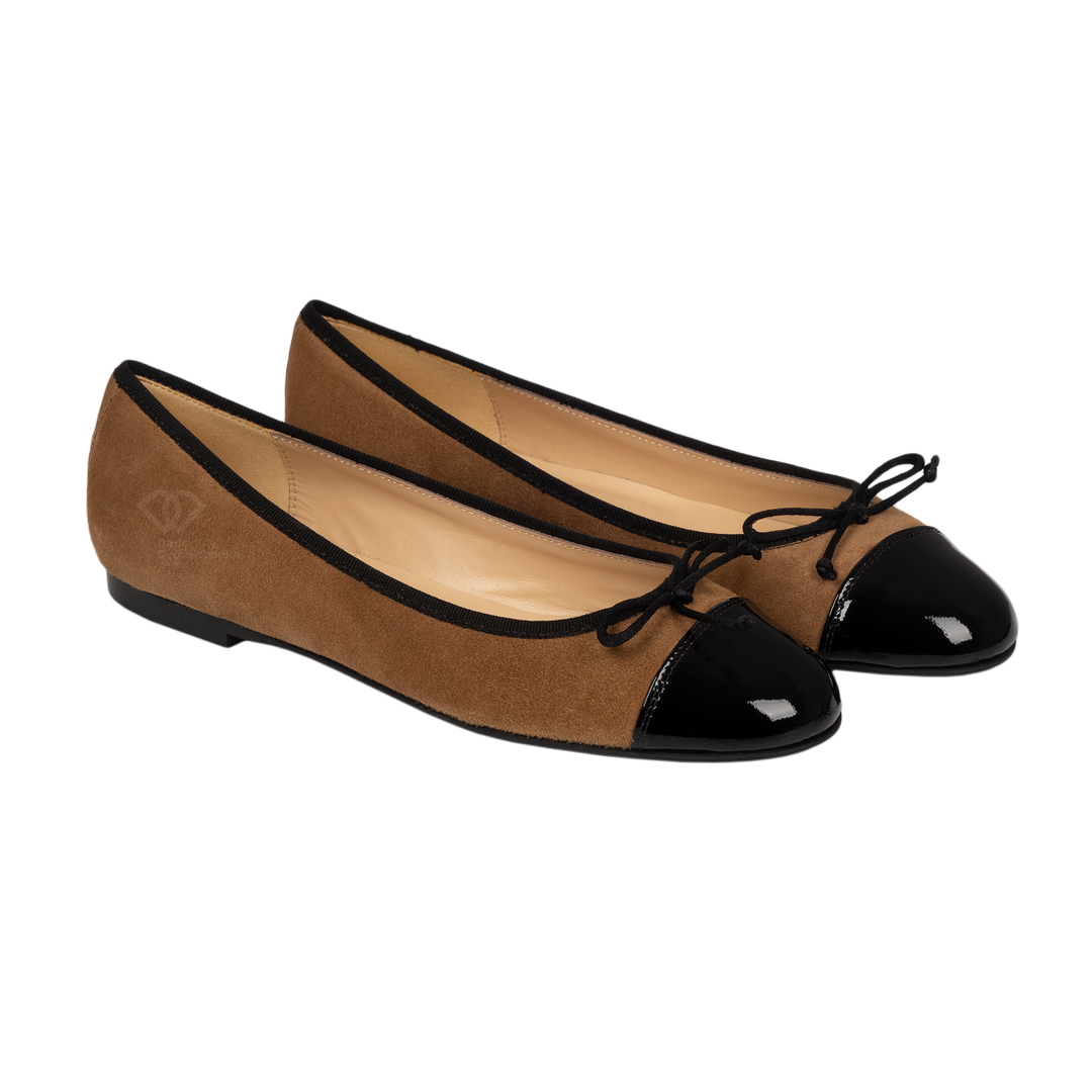 Узнаваемый силуэт с контрастным мысом и элегантным бантом. Комбинация замши и кожи в контрастных оттенках, делает пару по настоящему статусной. Характерный носок и бант делают балетки универсальными под любой образ. Стелька из натуральной кожи с мягкой подкладкой для комфорта в течении дня. Идеальная модель для тех, кто ценит вневременной стиль, качество и внимание к деталям.