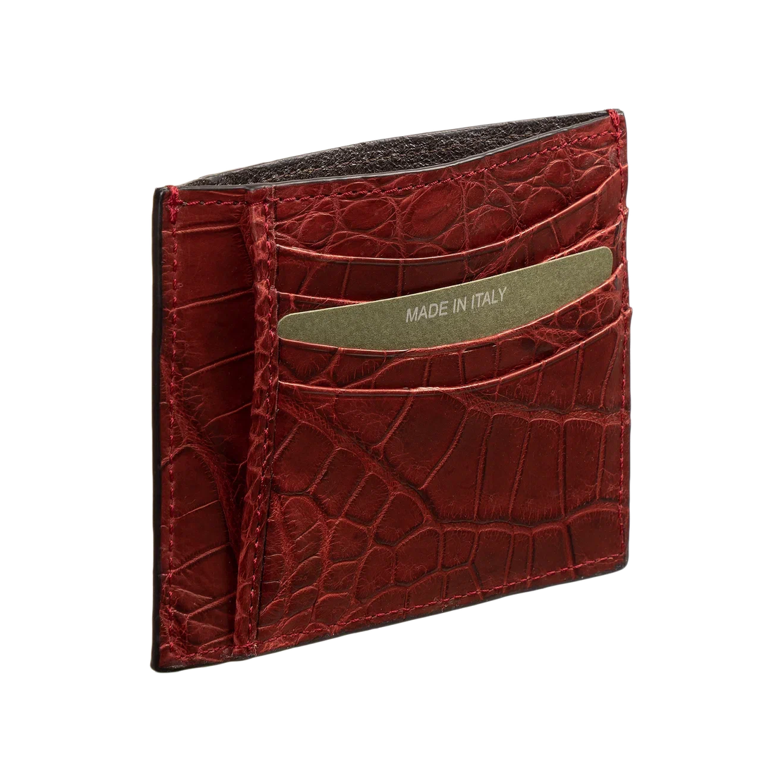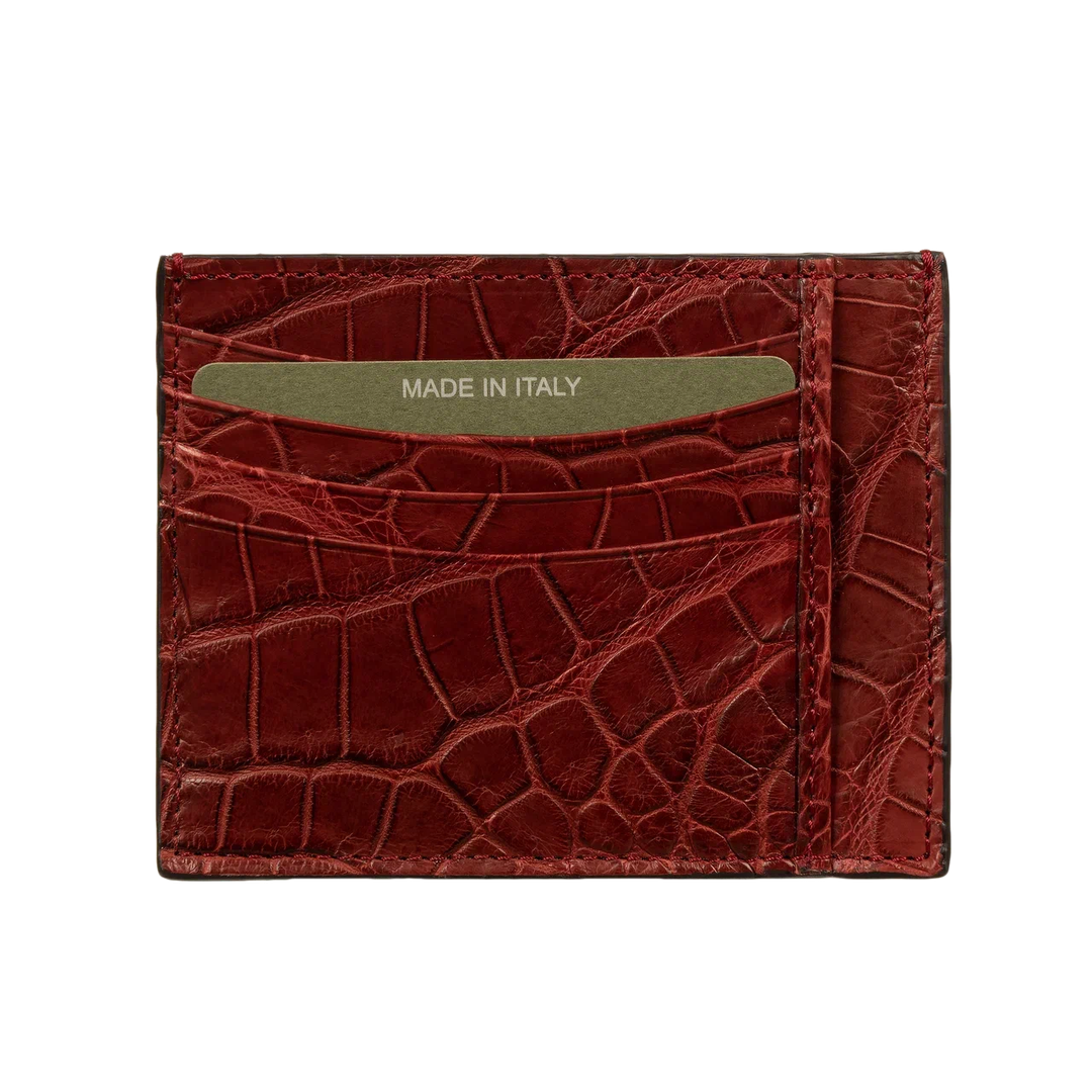 Компактный картхолдер Biagini выполнен из мягкой и при этом прочной крокодиловой кожи. Естественный фактурный рисунок чешуек, который делает каждый такой аксессуар уникальным, подчеркнули пигментами нескольких близких оттенков. Модель с четырьмя слотами для банковских карт (по две с каждой стороны) дополнили центральным карманом, где удобно хранить чеки. Идеальный аксессуар для тех, кто ценит минимализм, порядок и роскошные детали.Тонкий и плоский дизайн, который не утяжеляет карман и легко помещается в самые маленькие сумочки.