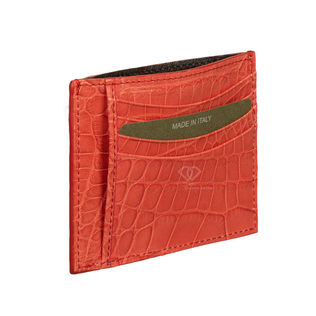 Компактный картхолдер Biagini выполнен из мягкой и при этом прочной крокодиловой кожи. Естественный фактурный рисунок чешуек, который делает каждый такой аксессуар уникальным, подчеркнули пигментами нескольких близких оттенков. Модель с четырьмя слотами для банковских карт (по две с каждой стороны) дополнили центральным карманом, где удобно хранить чеки. Идеальный аксессуар для тех, кто ценит минимализм, порядок и роскошные детали.Тонкий и плоский дизайн, который не утяжеляет карман и легко помещается в самые маленькие сумочки.