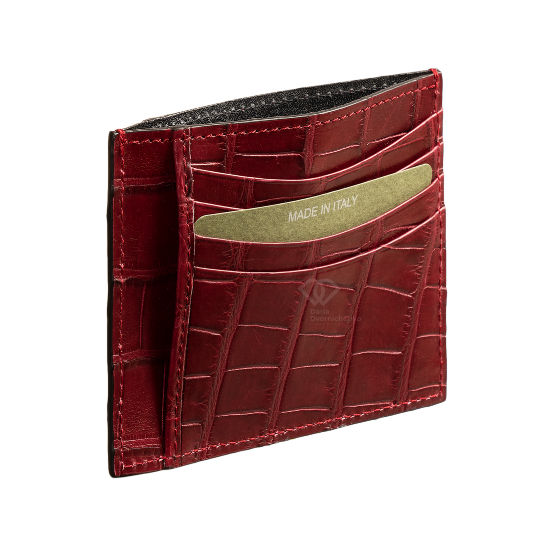 Компактный картхолдер Biagini выполнен из мягкой и при этом прочной крокодиловой кожи. Естественный фактурный рисунок чешуек, который делает каждый такой аксессуар уникальным, подчеркнули пигментами нескольких близких оттенков. Модель с четырьмя слотами для банковских карт (по две с каждой стороны) дополнили центральным карманом, где удобно хранить чеки. Идеальный аксессуар для тех, кто ценит минимализм, порядок и роскошные детали.Тонкий и плоский дизайн, который не утяжеляет карман и легко помещается в самые маленькие сумочки.