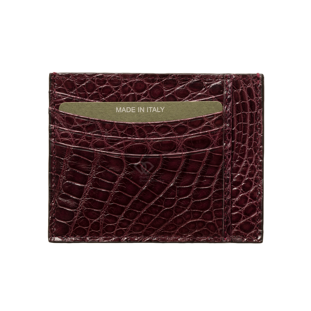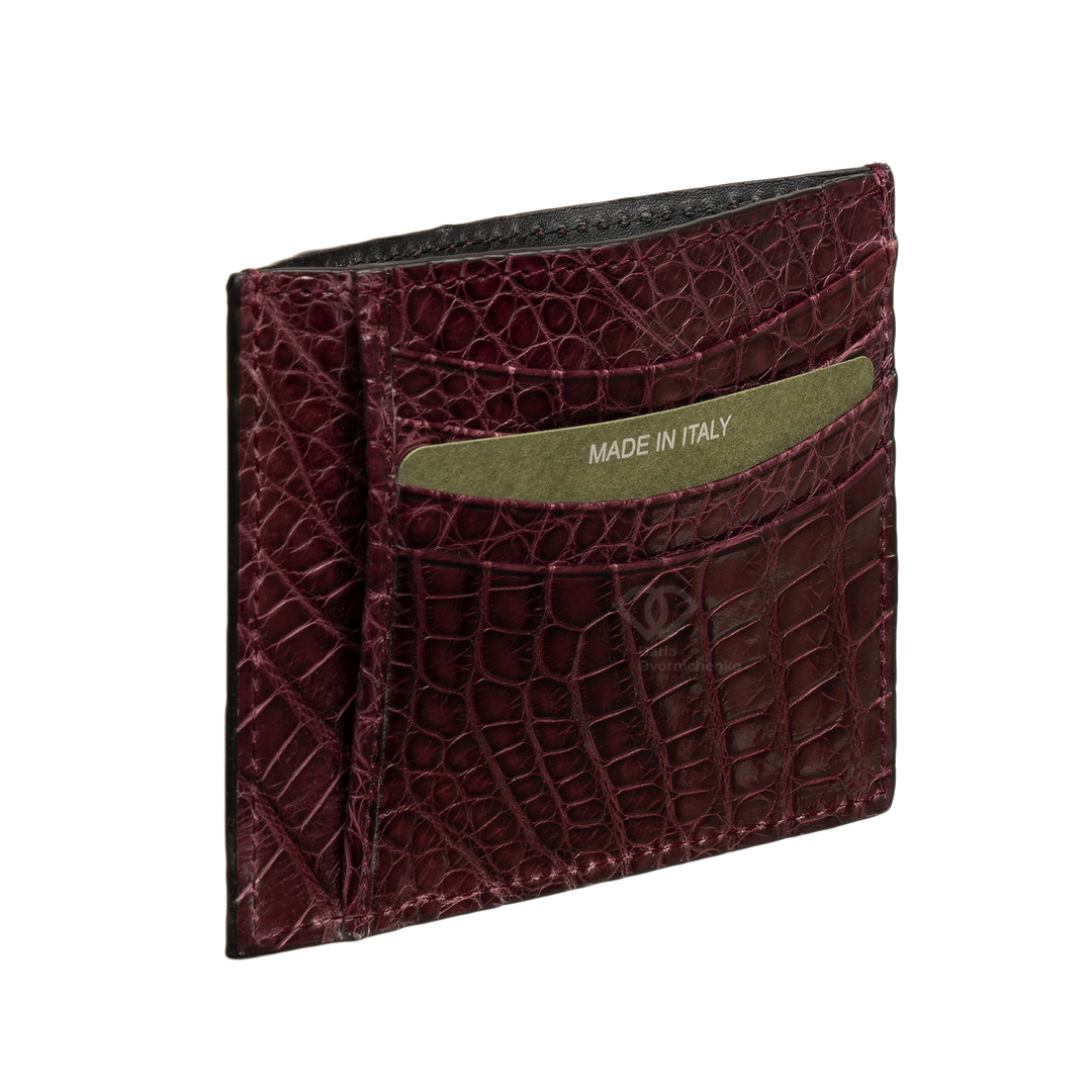 Компактный картхолдер Biagini выполнен из мягкой и при этом прочной крокодиловой кожи. Естественный фактурный рисунок чешуек, который делает каждый такой аксессуар уникальным, подчеркнули пигментами нескольких близких оттенков. Модель с четырьмя слотами для банковских карт (по две с каждой стороны) дополнили центральным карманом, где удобно хранить чеки. Идеальный аксессуар для тех, кто ценит минимализм, порядок и роскошные детали.Тонкий и плоский дизайн, который не утяжеляет карман и легко помещается в самые маленькие сумочки.