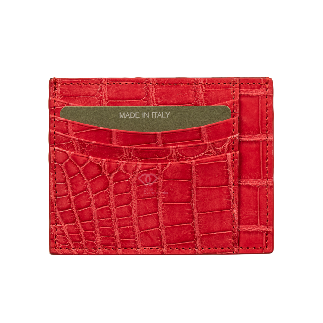 Компактный картхолдер Biagini выполнен из мягкой и при этом прочной крокодиловой кожи. Естественный фактурный рисунок чешуек, который делает каждый такой аксессуар уникальным, подчеркнули пигментами нескольких близких оттенков. Модель с четырьмя слотами для банковских карт (по две с каждой стороны) дополнили центральным карманом, где удобно хранить чеки. Идеальный аксессуар для тех, кто ценит минимализм, порядок и роскошные детали.Тонкий и плоский дизайн, который не утяжеляет карман и легко помещается в самые маленькие сумочки.