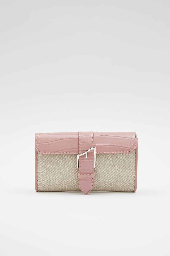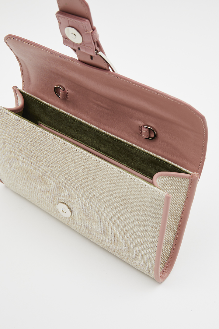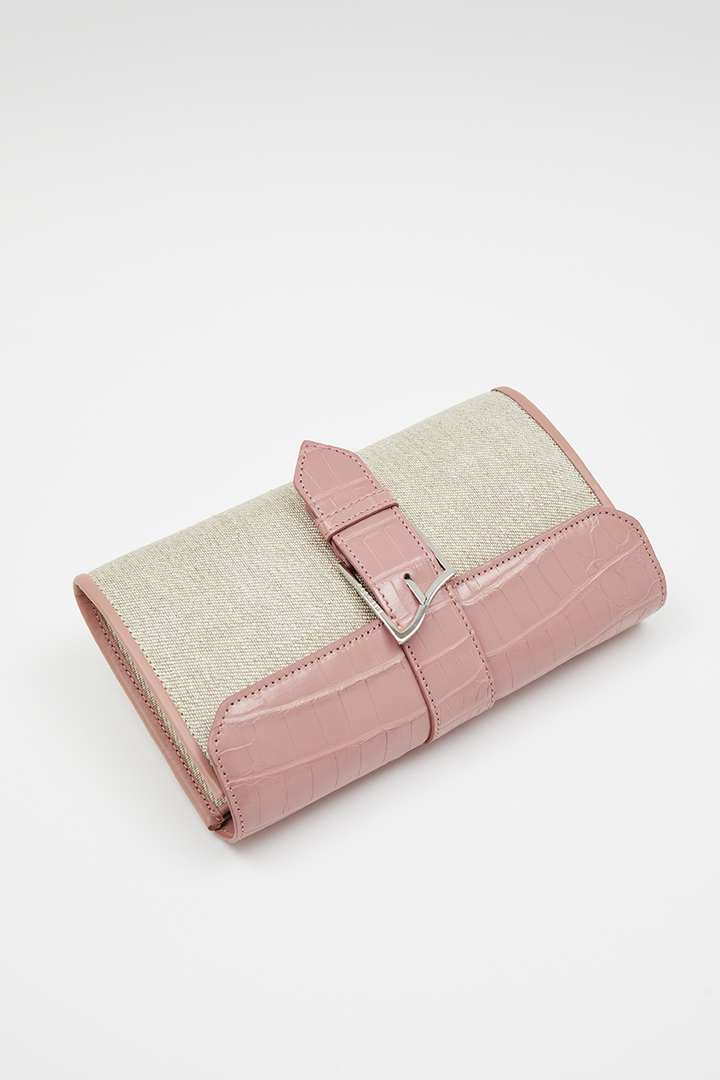 Сумочка выполнена из канвы и натуральной кожи крокодила. Внутри тканевая подкладка, длинный плечевой ремень, одно основное компактное отделение, внутренний карман на молнии.