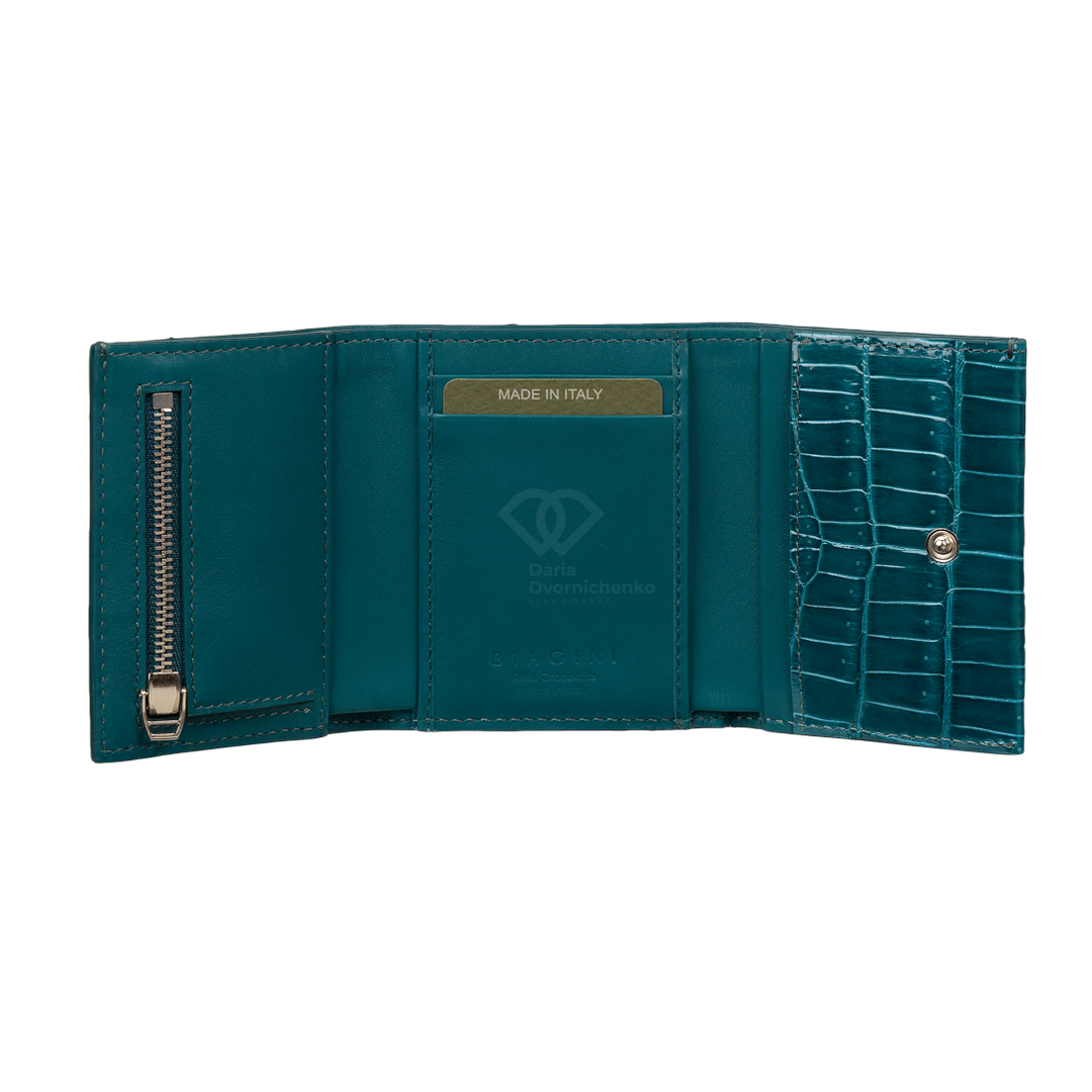 Компактный кошелек из натуральной кожи крокодила. Яркий и практичный аксессуар, который не только вместит все необходимое, но и станет модным цветовым акцентом. Внутри вместительное отделение для купюр, много слотов для банковских карт и отдельный внутренний отсек на молнии(идеально для мелочи).