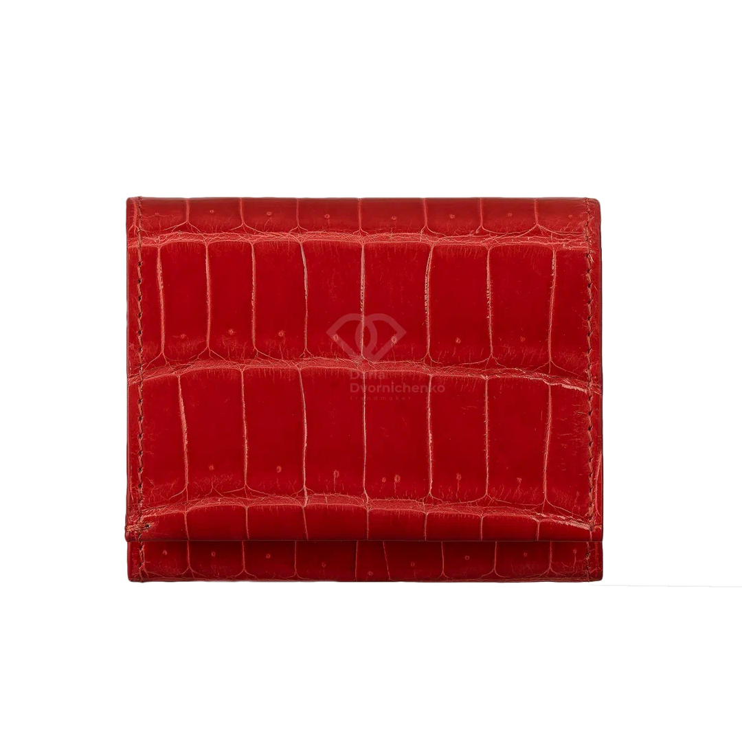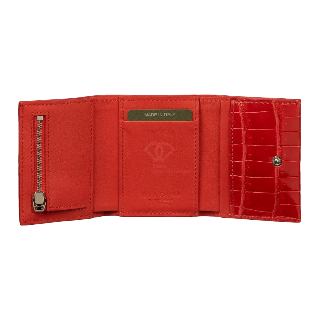 Компактный кошелек из натуральной кожи крокодила. Яркий и практичный аксессуар, который не только вместит все необходимое, но и станет модным цветовым акцентом. Внутри вместительное отделение для купюр, много слотов для банковских карт и отдельный внутренний отсек на молнии(идеально для мелочи).