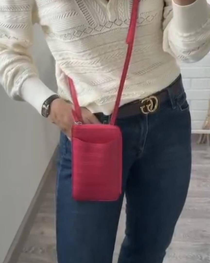 Многофункциональный аксессуар из натуральной кожи крокодила обедняет в себе чехол для телефона, кошелек для банковских карт и купюр, а так же стильную сумочку через плечо с регулируемым ремешком. Больше не нужно носить с собой отдельный кошелек- ваш телефон, деньги и карты собраны в одном аксессуаре. Отличный выбор для деловых поездок, путешествий и повседневного использования. Стильная альтернатива громоздким сумкам.