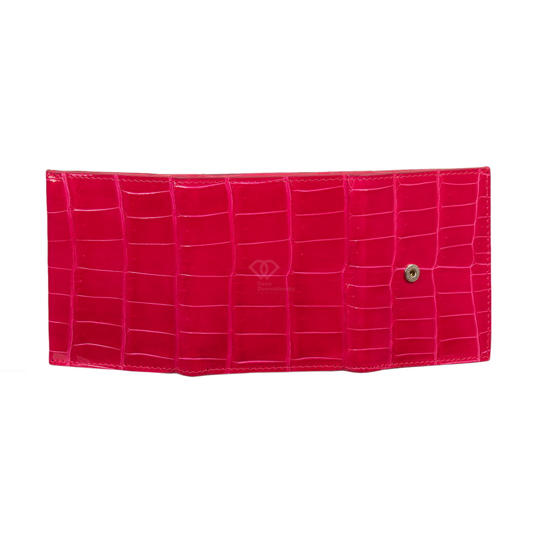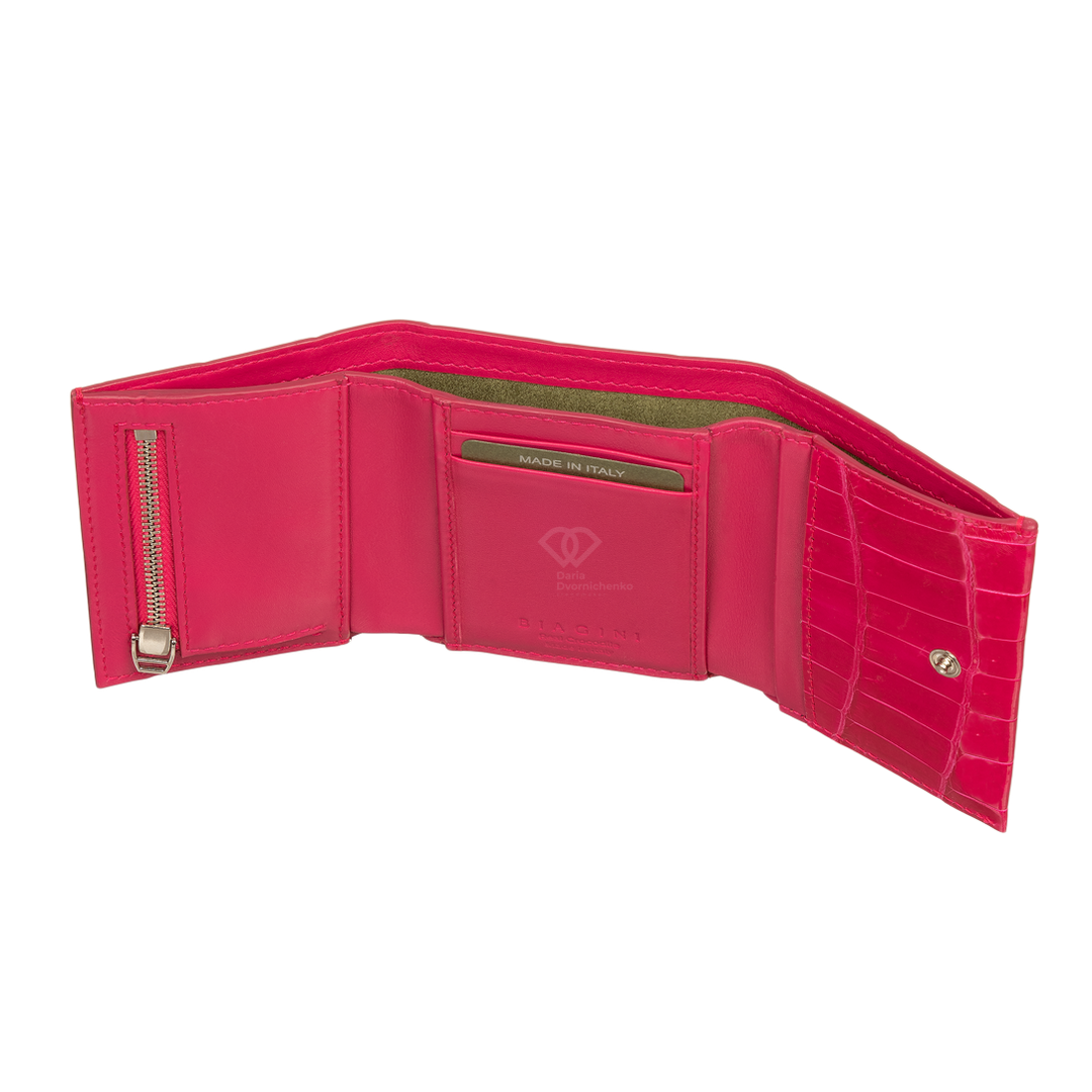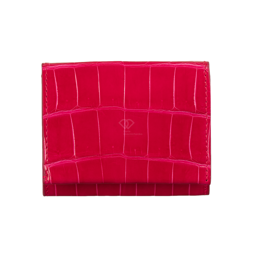 Компактный кошелек из натуральной кожи крокодила. Яркий и практичный аксессуар, который не только вместит все необходимое, но и станет модным цветовым акцентом. Внутри вместительное отделение для купюр, много слотов для банковских карт и отдельный внутренний отсек на молнии(идеально для мелочи).