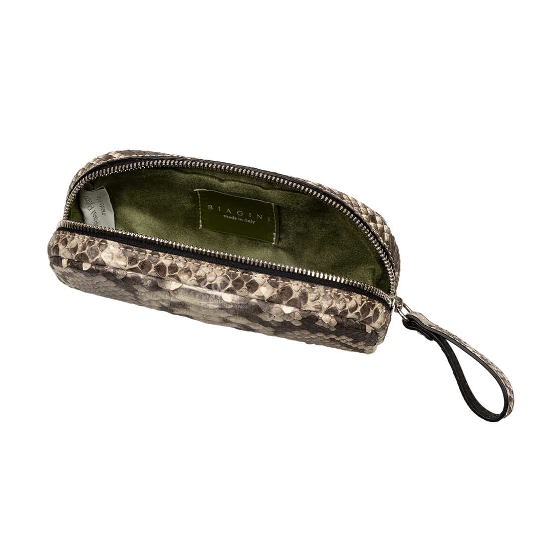 Косметичка BIAGINI из кожи питона — это больше чем аксессуар. Это заявление о стиле. Каждый аксессуар создается с вниманием к деталям, сохраняя уникальный природный узор рептилии, который никогда не повторяется. Широкая палитра насыщенных, глубоких цветов — от смелых и ярких до сдержанных классических — чтобы вы могли найти оттенок, отражающий ваше внутреннее «я».