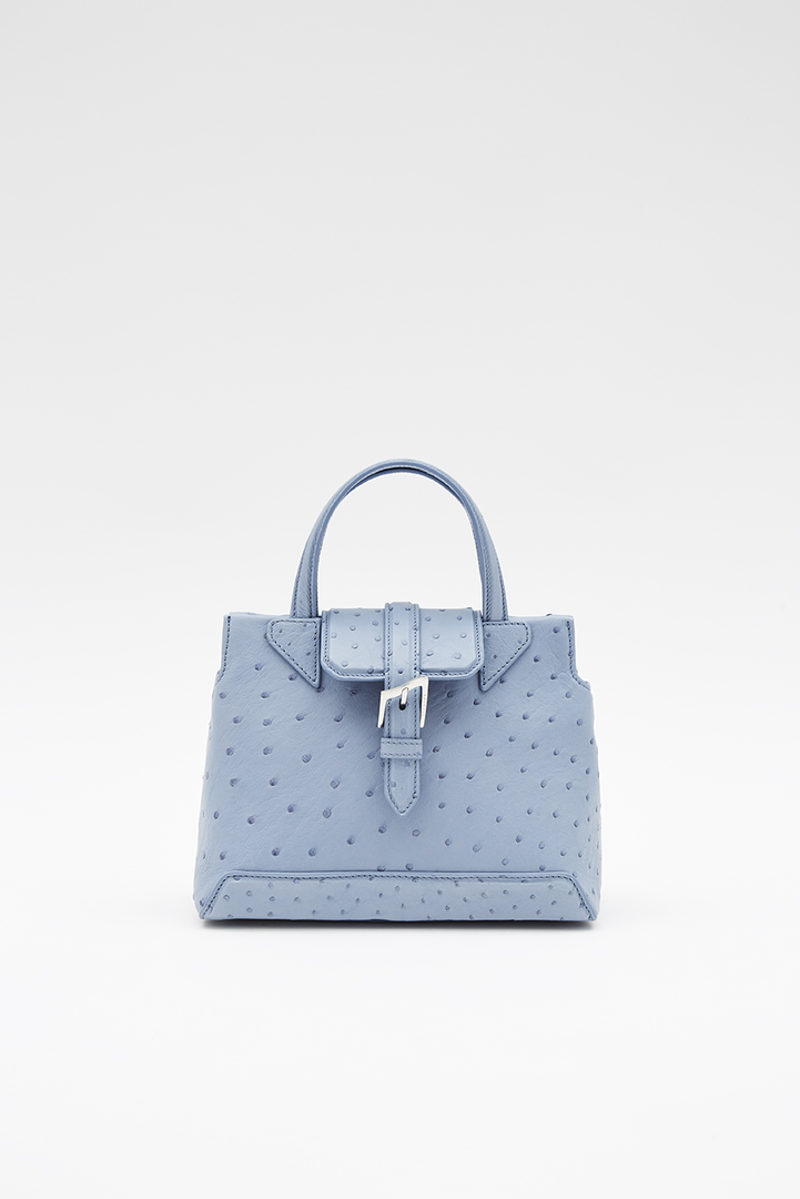 Сумочка выполнена из высококачественной кожи страуса. Уникальная форма с клапаном и металлической пряжкой. Внутри подкладка из ткани, одно основное отделение, карман на молнии. Закрывается на магнитную кнопку под декоративным ремнем с пряжкой. Оснащена двумя жесткими ручками и одним длинным плечевым ремнем.