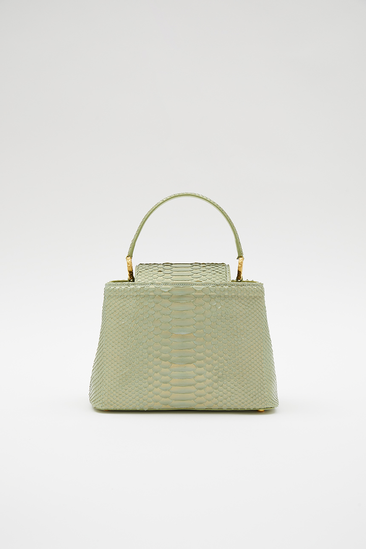 Сумочка выполнена из высококачественной кожи питона.Внутри подкладка из ткани, два отделения, несколько карманов. Закрывается на магниты. Одна ручка с уникальной фурнитурой, один плечевой ремешок.