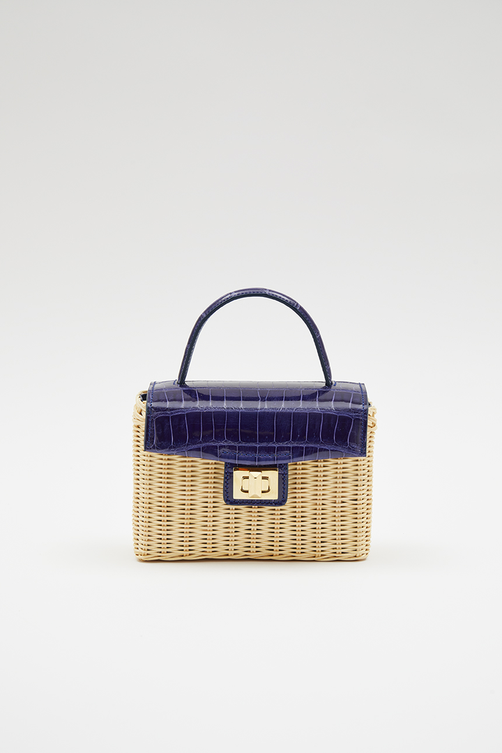 Сумочка выполнена из соломки и натуральной кожи крокодила. Уникальная форма с поворотным замком. Внутри подкладка из ткани, одно основное отделение.Оснащена одной короткой ручкой и одним съёмным плечевым ремнем.