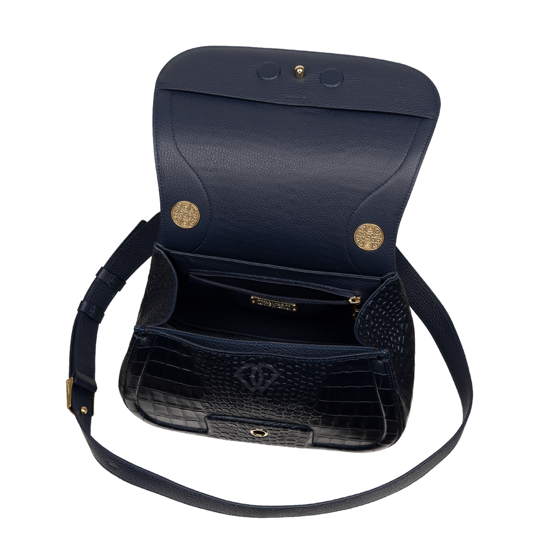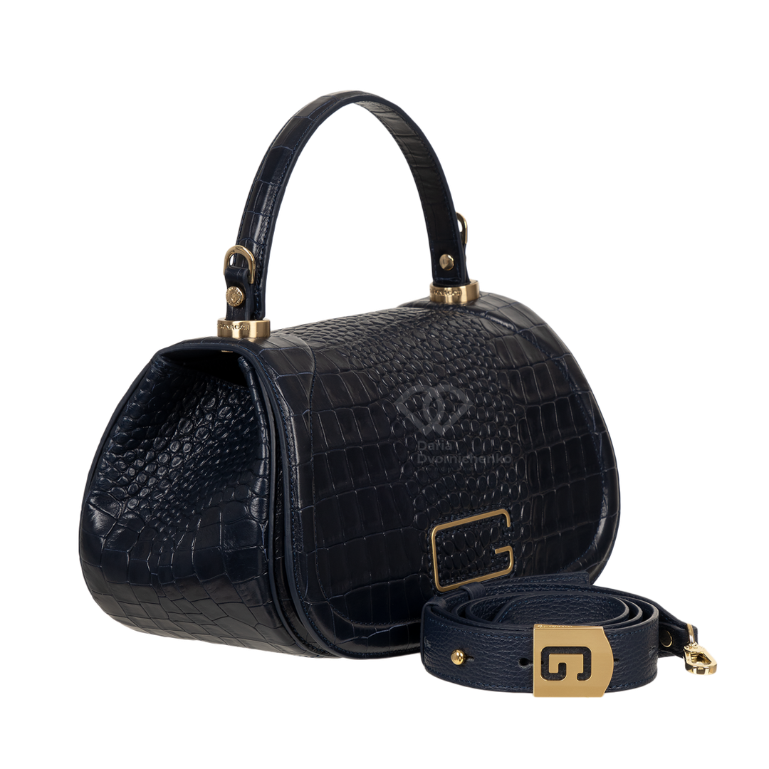 Кроссбоди выполнена из телячьей кожи с рельефным тиснением под крокодиловую кожу, она придает образу роскоши и индивидуальности. Изящная полукруглая форма со слегка изогнутым силуэтом придает сумке женственность и утонченность.Идеальный аксессуар для тех, кто ценит легкость и элегантность в повседневности. Металические элементы с тонким блеском подчёркивают качество и дизайн. Сумка оснащена удобной короткой ручкой и регулируемым плечевым ремешком. Внутри сумочка отделана гладкой подкладкой в тон основному цвету, основное отделение достаточно просторное для самых необходимых вещей.