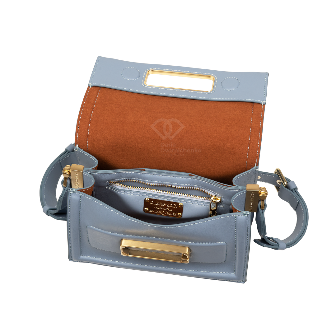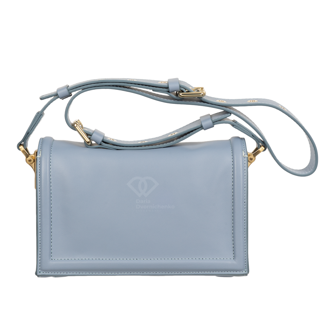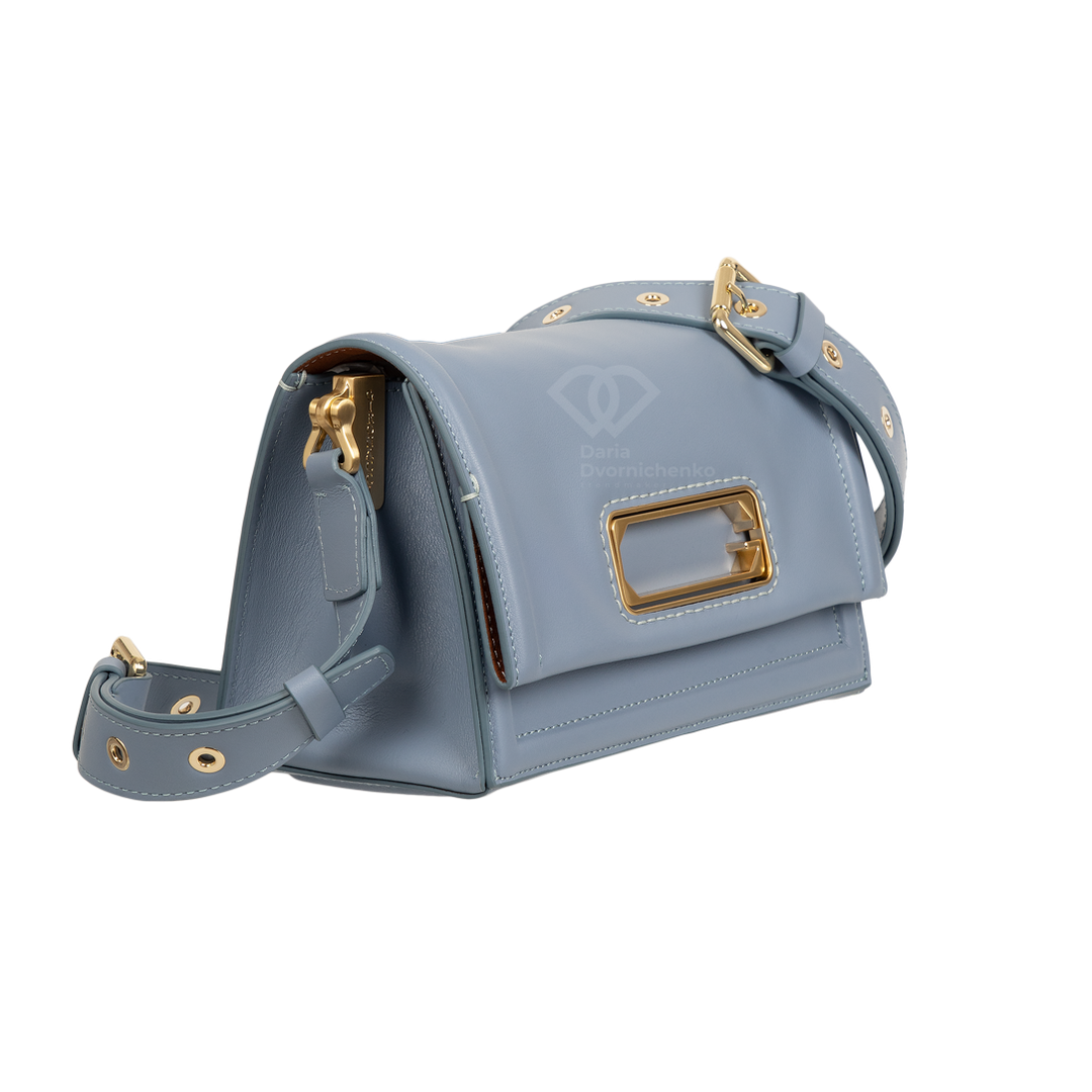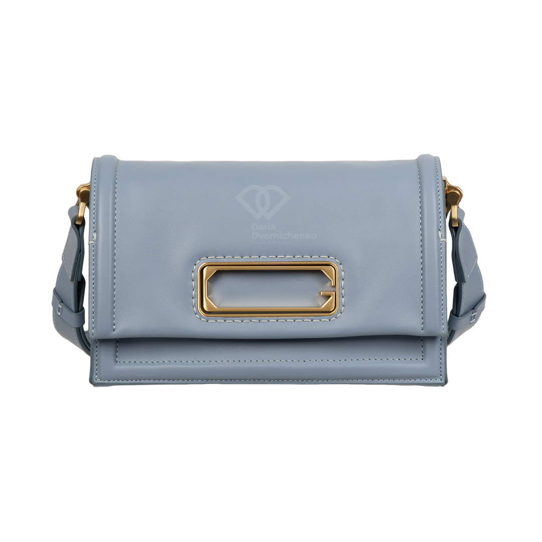 Элегантная сумочка выполнена из высококачественной кожи наппа, прямоугольная форма и четкие линии подчеркивают современный дизайн. Золотистые пряжки,замок и металлические элементы на ремешке и клапане придают изысканный акцент и дорогой вид. Закрывается на стильный клапан с золотистой металлической пластиной, которая служит центральным элементом дизайна. Внутренняя часть сумки отделана эффектной контрастной подкладкой из алькантары- добавляет изделию индивидуальности и стиля. Внутри 2 отделения, 1 карман на магнитах, 1 карман на молнии. Большой запас регулировки плечевого ремня до 135 см