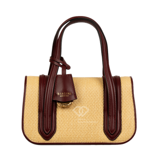 Сумочка выполнена из рафии в натуральном цвете и кожи, подкладка тканевая