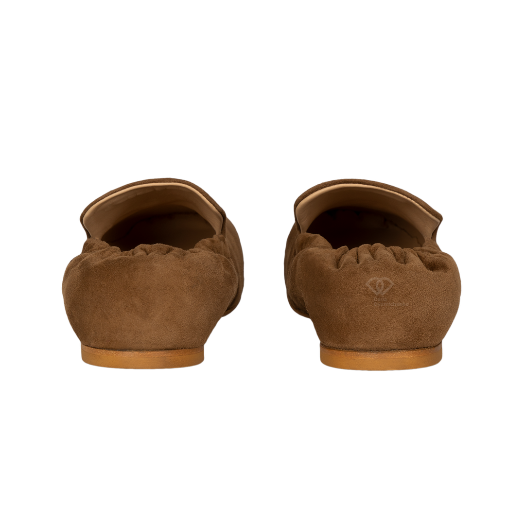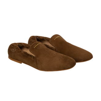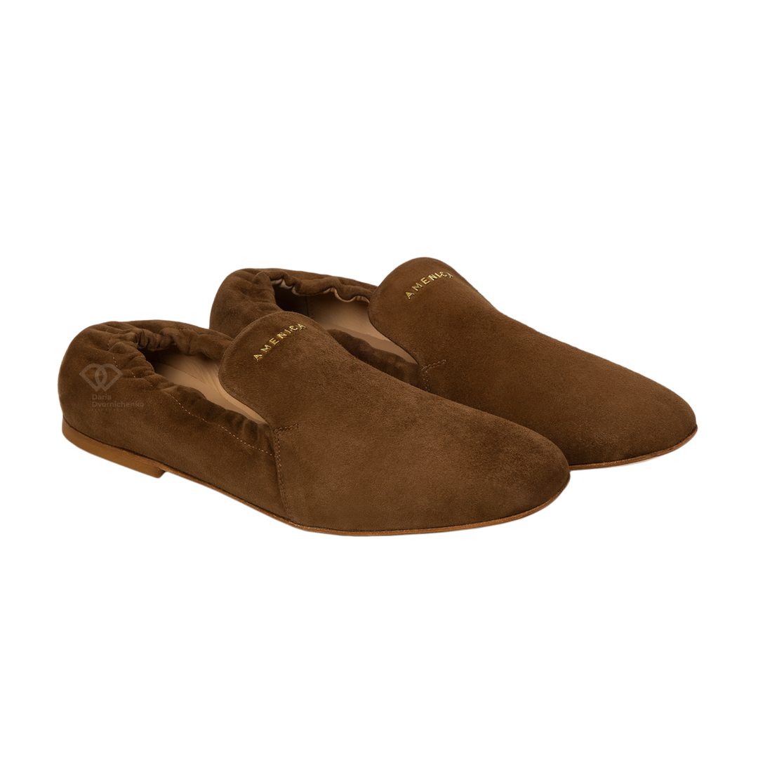 Мягкие лоферы с квадратным мысом это сочетание актуальных трендов и комфорта. Глубокий коньячный оттенок натуральной замши добавляет образу благородства. Квадратный носок — главный хит сезона, который визуально делает образ более современным и дорогим. Благодаря мягкой конструкции и отсутствию жестких вставок, лоферы ощущаются на ногах как домашние тапочки. Идеальны для долгих прогулок или активного рабочего дня. Лаконичное золотистое лого бренда на подъеме подчеркивает статус обуви, не перегружая дизайн.