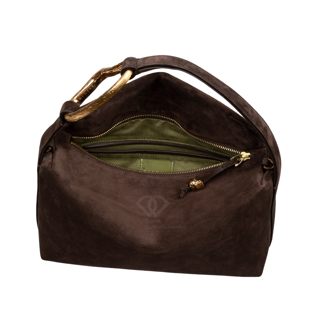 Стильный мессенджер Лиезон сочетает в себе современный дизайн и простоту. Модель выполнена в лаконичной форме с плавными линиями и легкой асимметрией, что придает аксессуару выразительность. Главный акцент- изящная ручка с золотистым металлическим декором создающая благородный контраст с мягкой текстурой замши. Сумка подходит как для повседневных образов, так и для вечерних выходов. Внутри замшевая подкладка , внутренний карман на молнии, съемный плечевой ремешок.