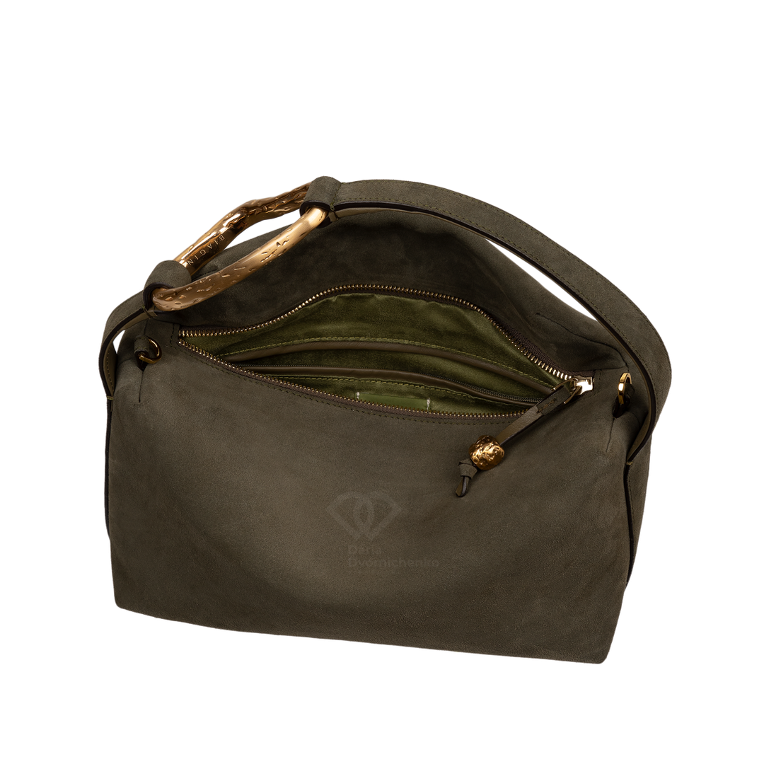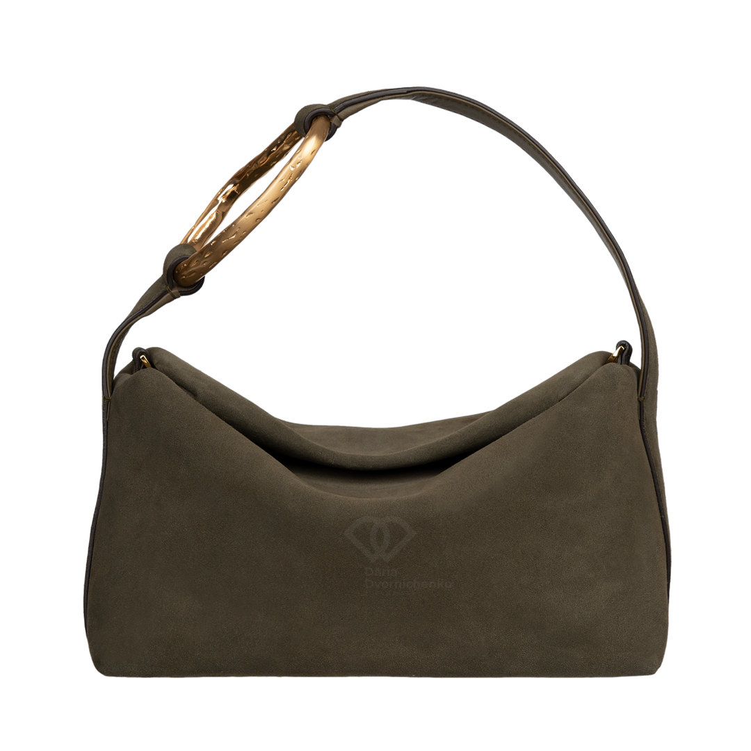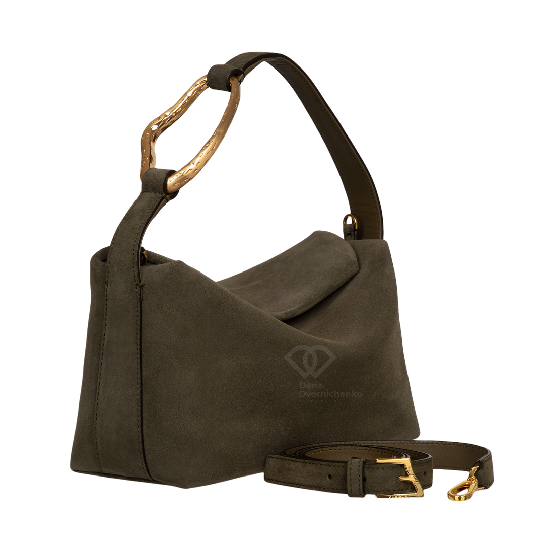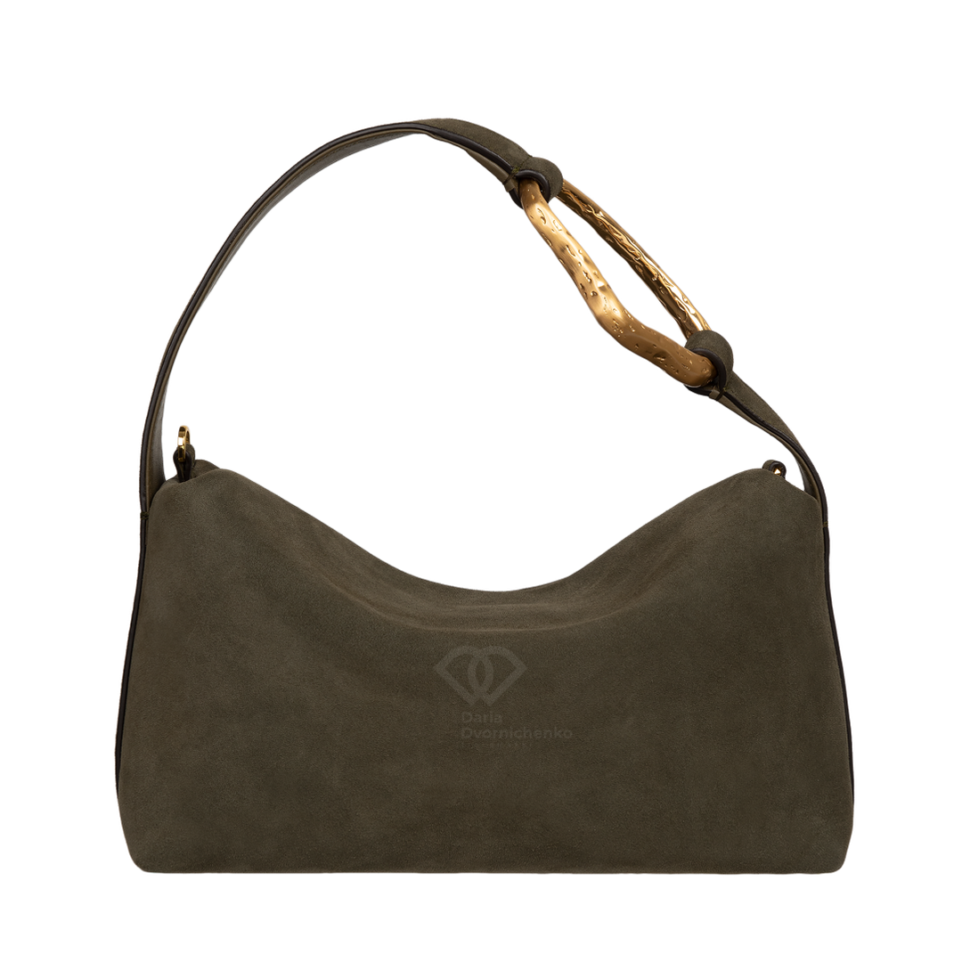 Стильный мессенджер Лиезон сочетает в себе современный дизайн и простоту. Модель выполнена в лаконичной форме с плавными линиями и легкой асимметрией, что придает аксессуару выразительность. Главный акцент- изящная ручка с золотистым металлическим декором создающая благородный контраст с мягкой текстурой замши. Сумка подходит как для повседневных образов, так и для вечерних выходов. Внутри замшевая подкладка , внутренний карман на молнии, съемный плечевой ремешок.