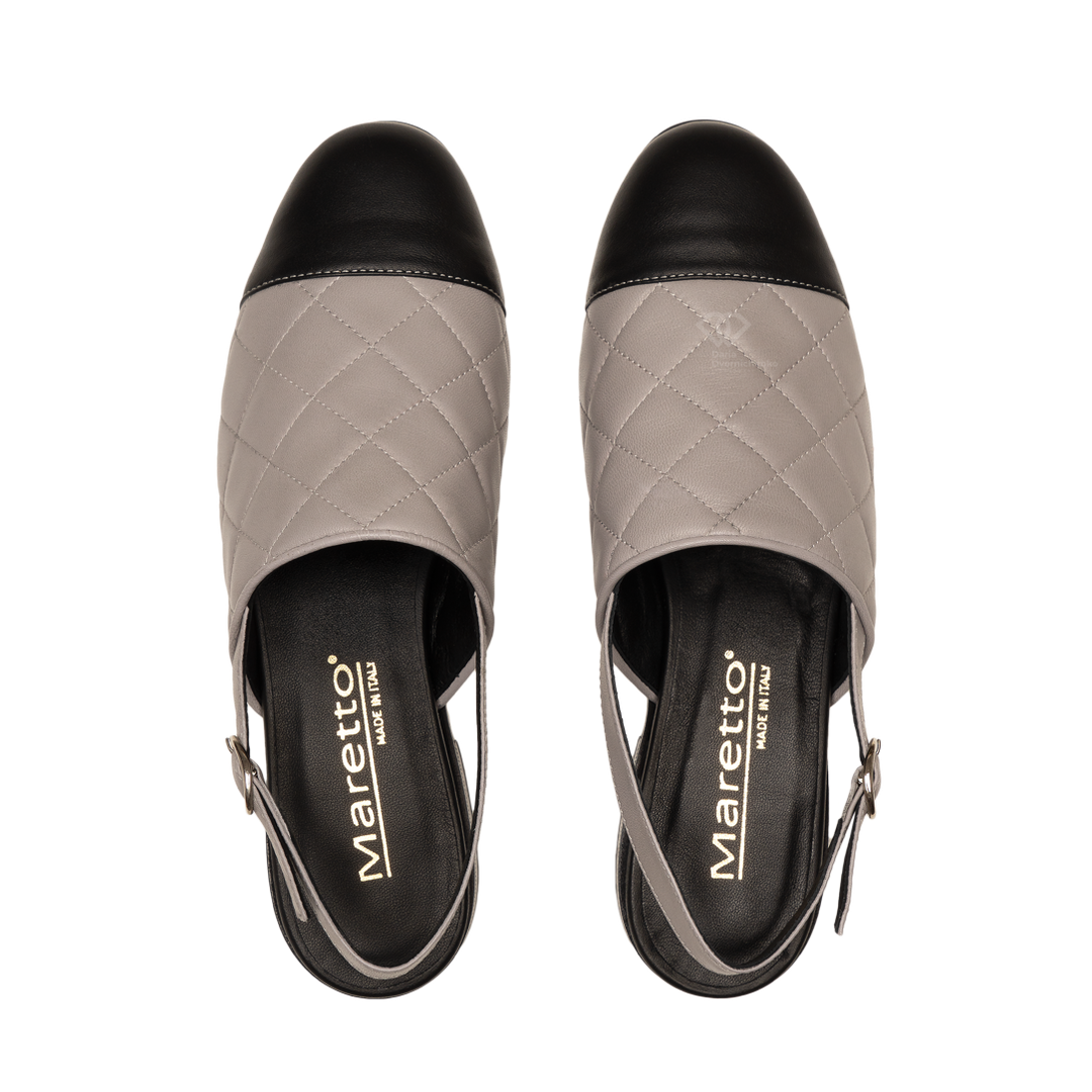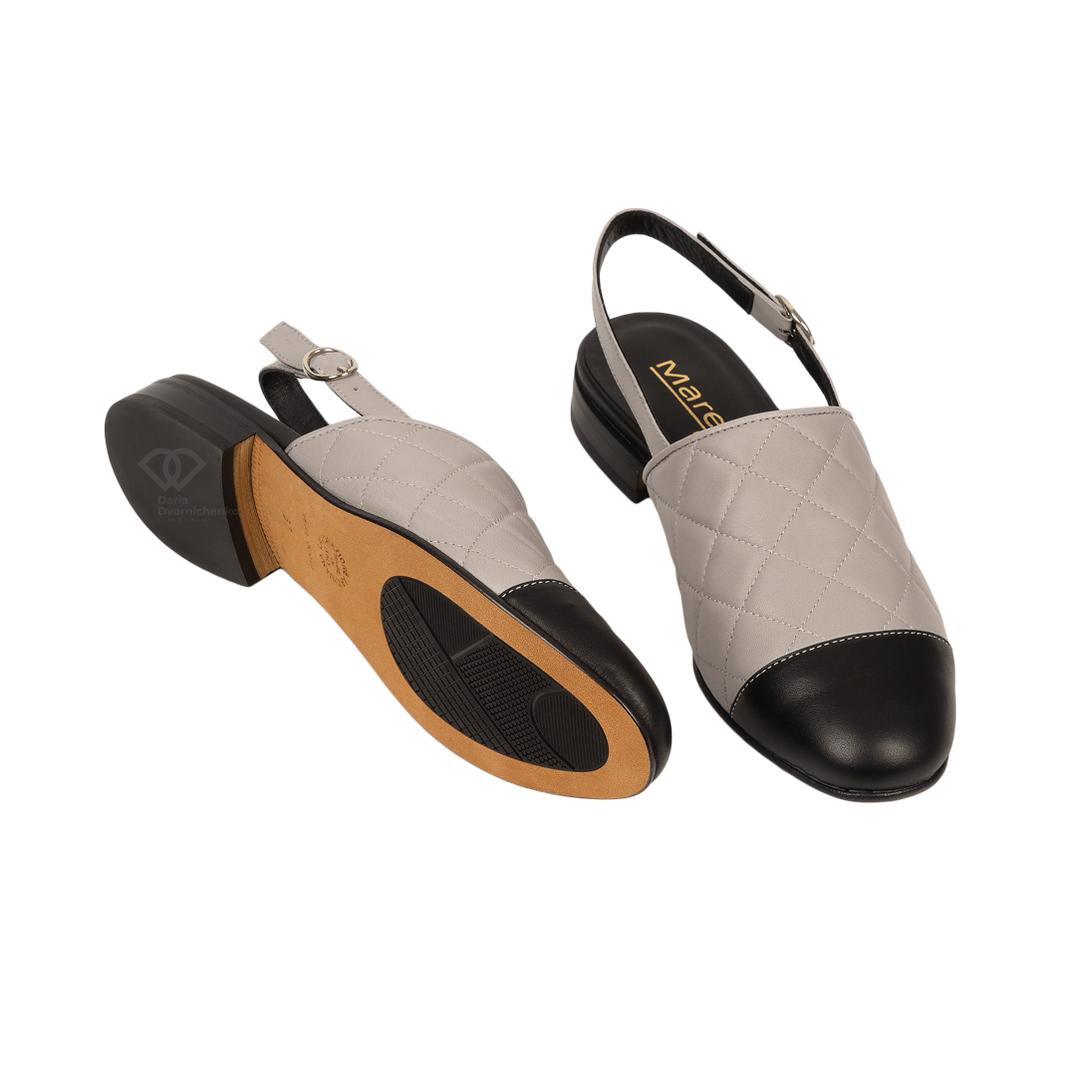 Эти мюли-слингбэки в стиле «шанель» — квинтэссенция парижского шика. Сочетание стеганой фактуры, контрастного мыса и безупречного итальянского качества делает их базовой инвестицией в гардероб.Элегантная модель с закрытым мысом, которая идеально балансирует между строгим офисным дресс-кодом и расслабленным вечерним образом. Двухцветный дизайн визуально делает стопу более изящной.Премиальная мягкая кожа с объемной ромбовидной прошивкой (стежка), которая придает паре статусный вид.Открытая пятка с регулируемым ремешком обеспечивает идеальную посадку и легкость в жаркую погоду.
