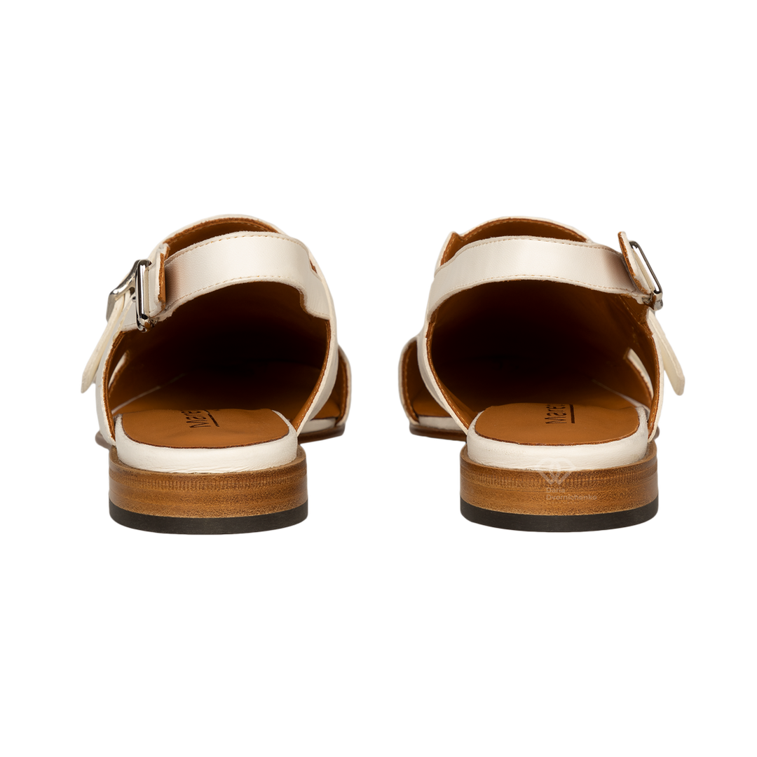 Лаконичная форма, вдохновленная мужскими лоферами или монками, в сочетании с открытой пяткой создает ультрамодный и свежий силуэт для летнего сезона.Кипенно-белый — освежает любой образ и подчеркивает загар.Два функциональных ремешка с серебристыми пряжками позволяют регулировать подъем.Стелька и подкладка из кожи коньячного оттенка создают эффектный контраст.