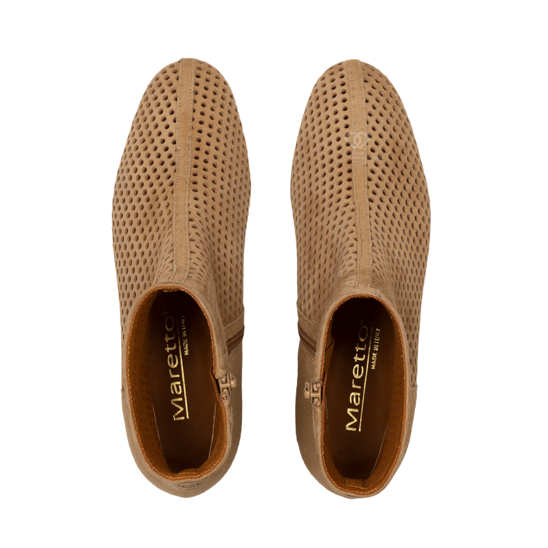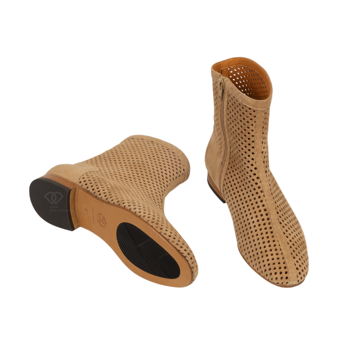 Необычная модель, объединяющая форму ботильонов и легкость летней обуви. Перфорация создает уникальный геометрический узор и обеспечивает идеальный воздухообмен. Высокий силуэт на молнии, мягкий замша, эффект «второй кожи». Универсальный нюдовый оттенок визуально удлиняет ногу.