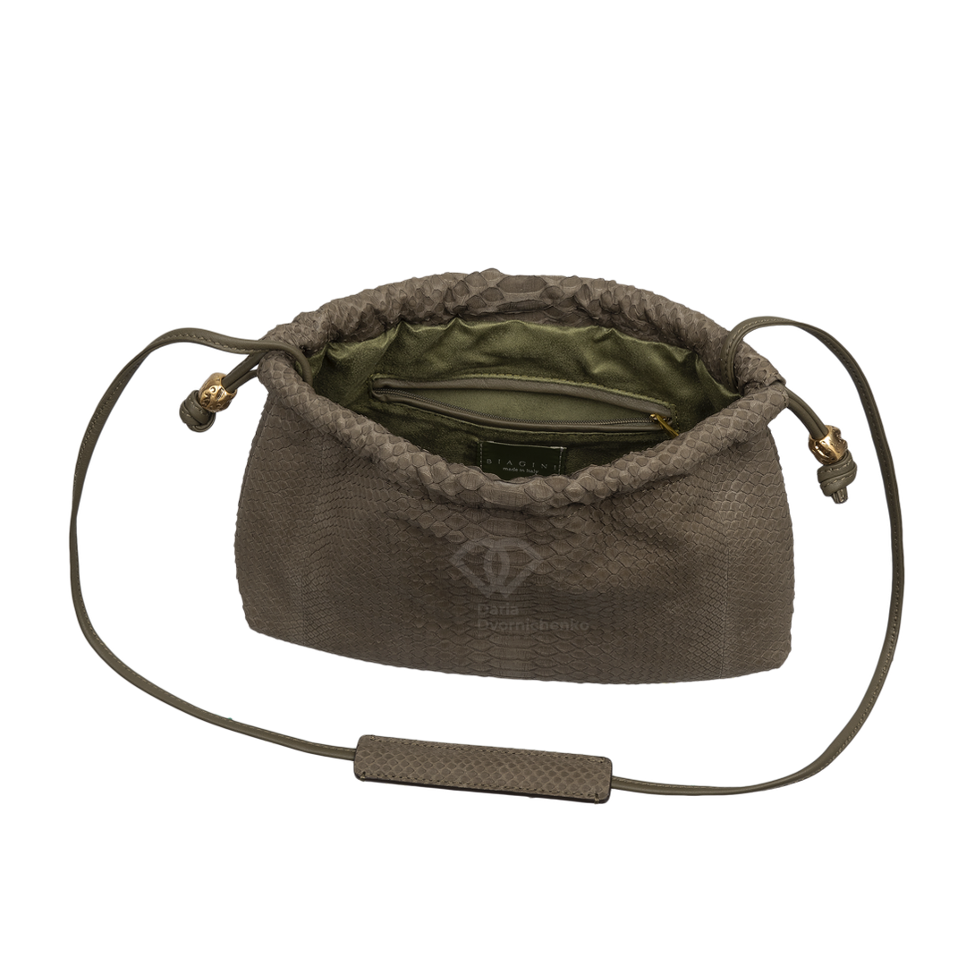 Изысканная женская сумочка - пуш выполненная из 100% натуральной кожи питона/ нубука. Этот уникальный аксессуар отличается глубокой и благородной текстурой чешуек кожи питона, которые создавали неповторимый и роскошный вид.