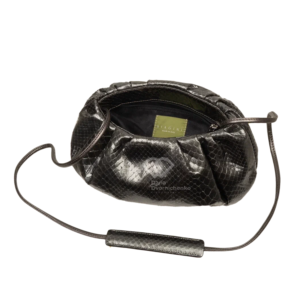 Яркая, акцентная сумочка из натуральной кожи питона создана для того, чтобы внести в ваш стиль новое прочтение. Каждый экземпляр уникален, каждый натуральный узор кожи питона неповторим. Природа создала этот дизайн, а BIAGINI сохранили его совершенство. Идеальная сумочка пуш для тех, кто ценит роскошь и безупречный стиль, созданная на все случаи жизни: вечерних выходов, свиданий, деловых встреч и любых моментов когда вам нужно взять с собой самое необходимое. Удобная и надежная магнитная застежка обеспечивает легкий доступ к содержимому. Никаких видимых замков или кнопок, только элегантная чистая форма. Благодаря прочному дну, сумочка всегда сохраняет свою аккуратную форму облачка.
