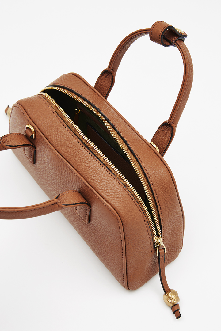 2 короткие ручки, 1 длинный ремень, одно отделение, два кармана, один из них на молнии.