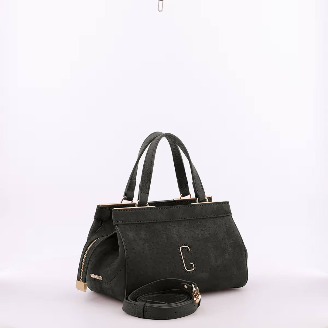 Саквояж выполнен из премиальных материалов с фактурой «под страуса», что придает изделию особую глубину и текстурность. Лаконичный силуэт с четкими линиями и расширяющимися боковинами, боковая часть которых дополнена золотистой молнией. Удобные двойные ручки для ношения в руке и съемный, регулируемый плечевой ремень.