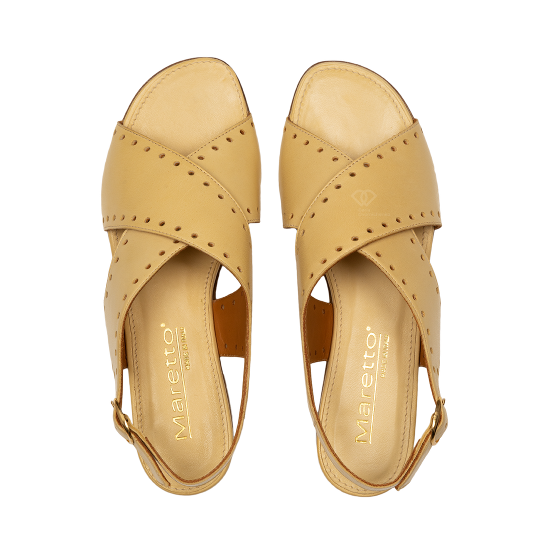 Эти сандалии с открытым мысом и перекрестными ремешками — воплощение изысканного минимализма. Нежный пастельный оттенок и декоративная перфорация делают их универсальной парой как для городских прогулок, так и для отпускных образов. Натуральная мягкая кожа, обеспечивающая комфорт и долговечность.Широкие перекрещивающиеся ремешки надежно фиксируют стопу, а изящная перфорация по краям добавляет модели легкости.Регулируемый ремешок на пятке с качественной фурнитурой позволяет идеально подогнать обувь по полноте.Плоский ход с небольшим устойчивым каблуком для максимального комфорта в течение всего дня.