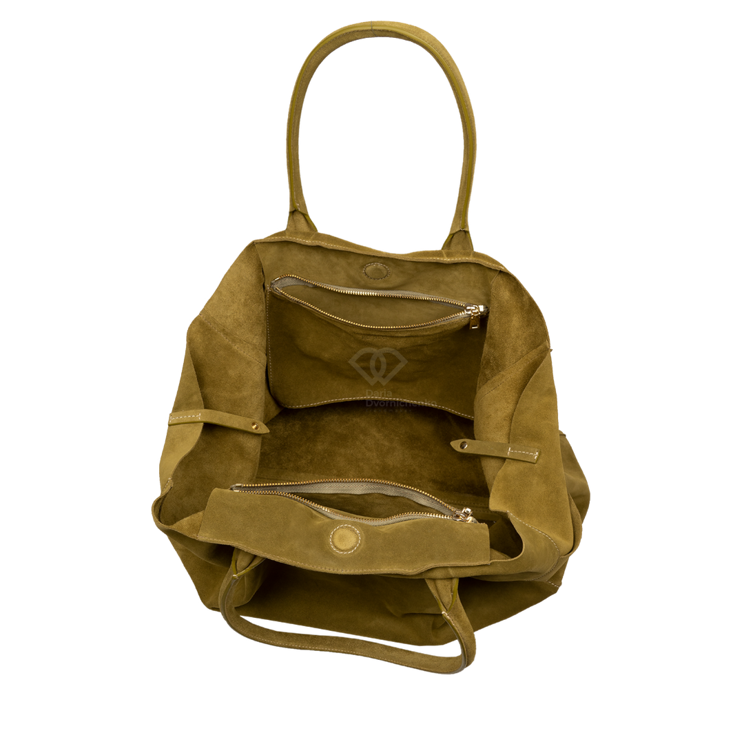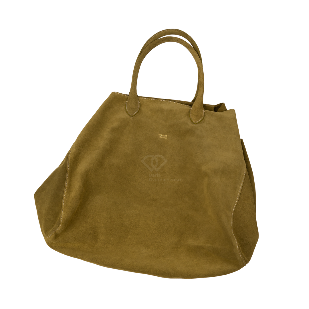 Шоппер выполнен из высококачественной натуральной замши, она обладает благородной бархатистой фактурой и актуальной формой. Формат шоппера позволяет легко разместить все необходимое: от документов формата А4 и планшета до косметички и личных вещей. Удлиненные кожаные ручки с надежным креплением позволяют комфортно носить сумку как в руках, так и на плече, что особенно важно при динамичном ритме жизни
