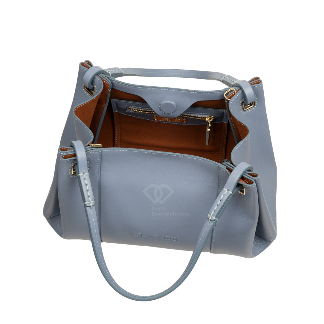 Элегантный шоппер из мягкой кожи наппы, приятная на ощупь и обладающая изысканным матовым блеском. Внутри три основным отделения и несколько кайманов для порядка и удобства хранения. Длинный регулируемый плечевой ремень до 135 см удобно носить через плечо или босс-боди.