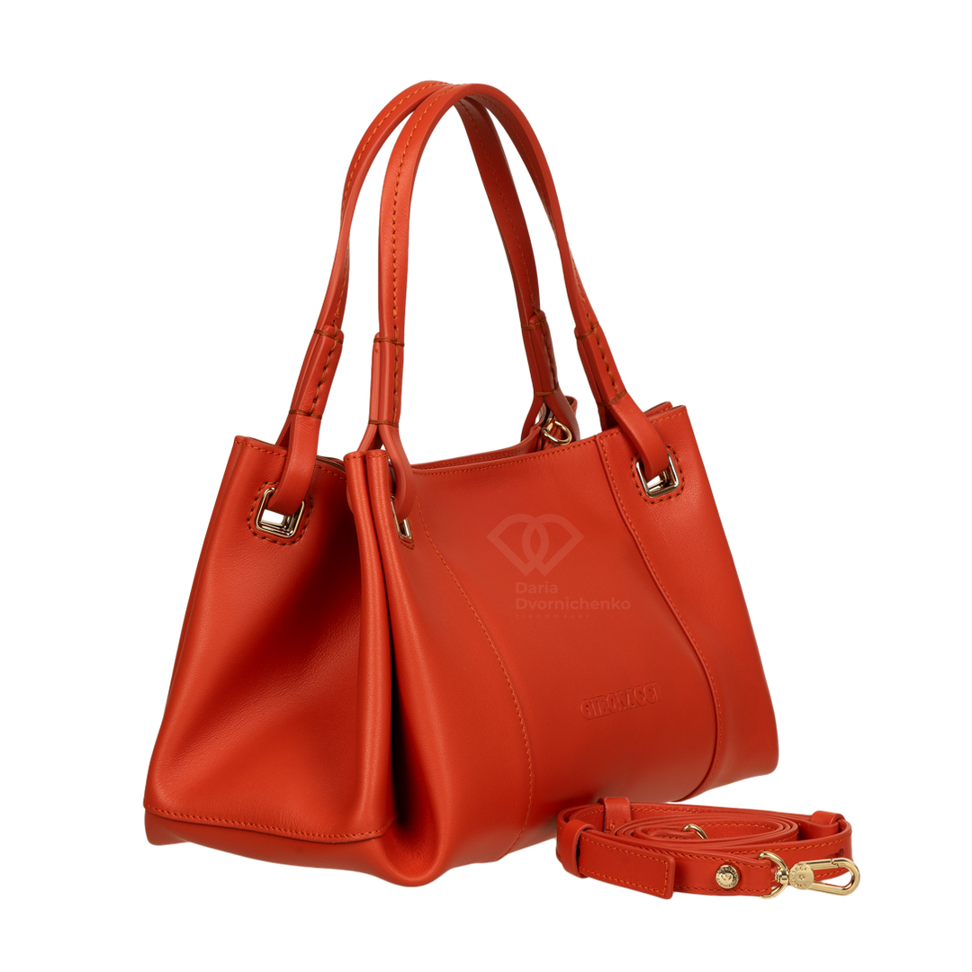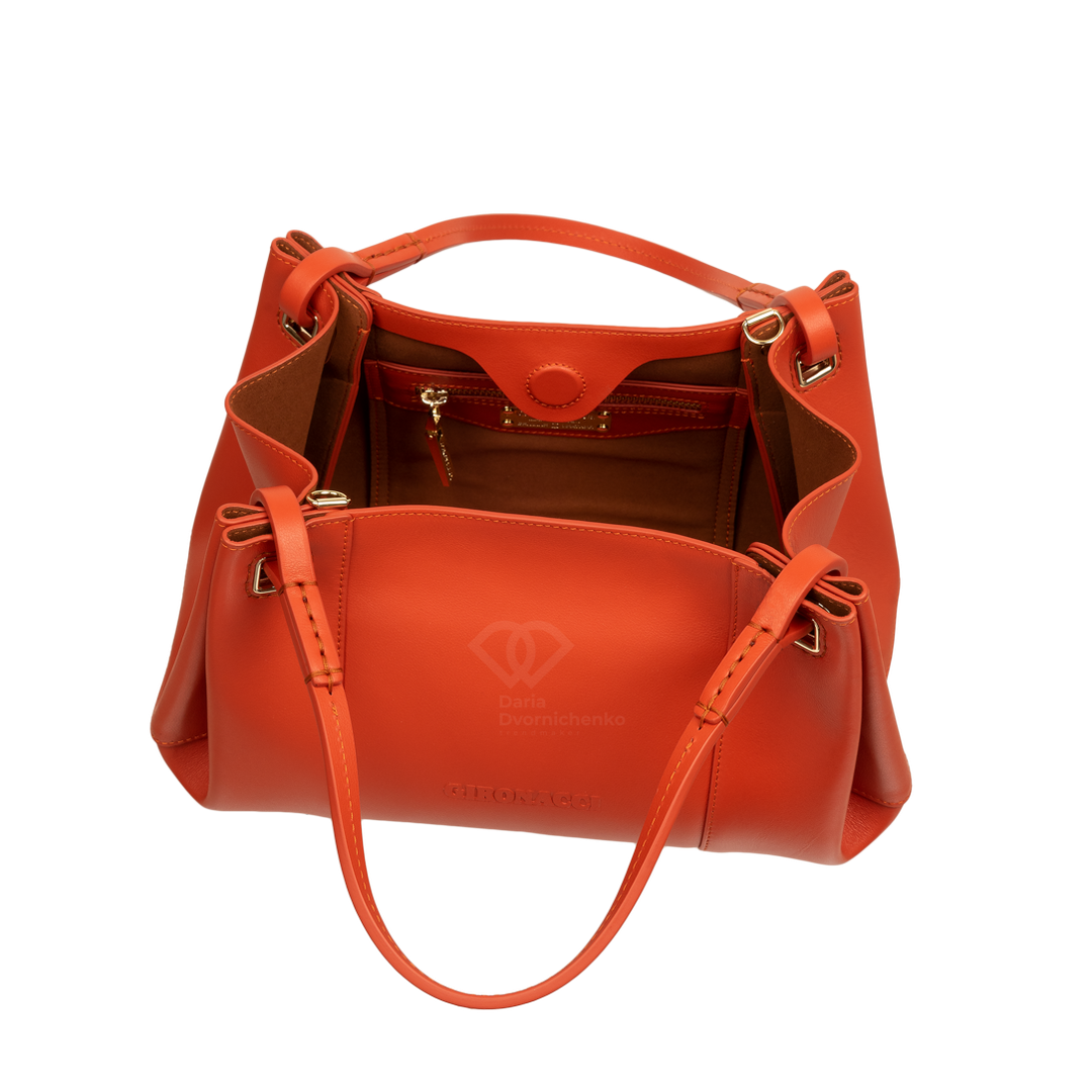 Элегантный шоппер из мягкой кожи наппы, приятная на ощупь и обладающая изысканным матовым блеском. Внутри три основным отделения и несколько кайманов для порядка и удобства хранения. Длинный регулируемый плечевой ремень до 135 см удобно носить через плечо или босс-боди.