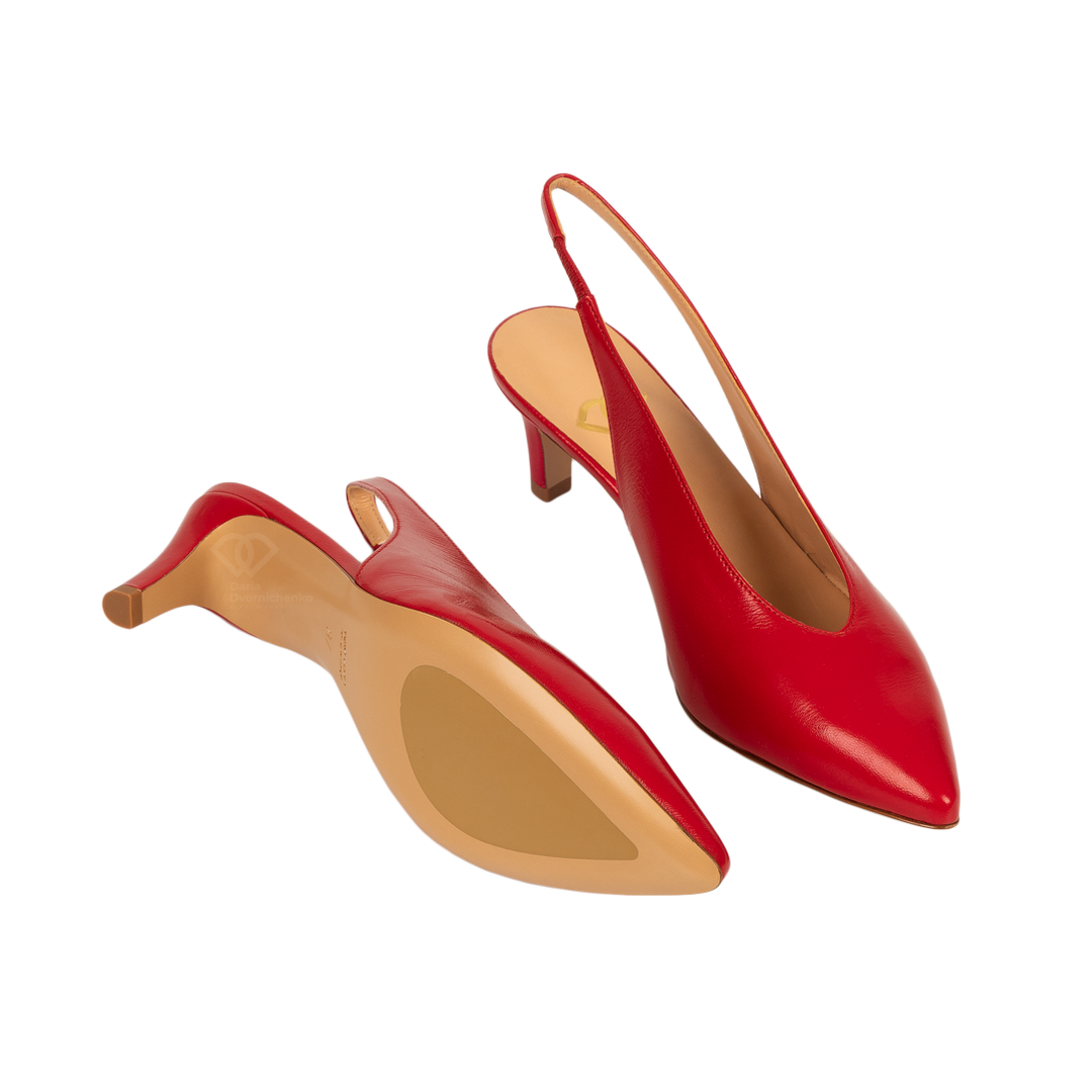 Кожаные слингбэки с глубоким V-образным вырезом - это яркая и характерная модель, которая сочетает в себе цвет и элегантную форму. Эти туфли созданы для того, чтобы стать центральным акцентом вашего образа.
