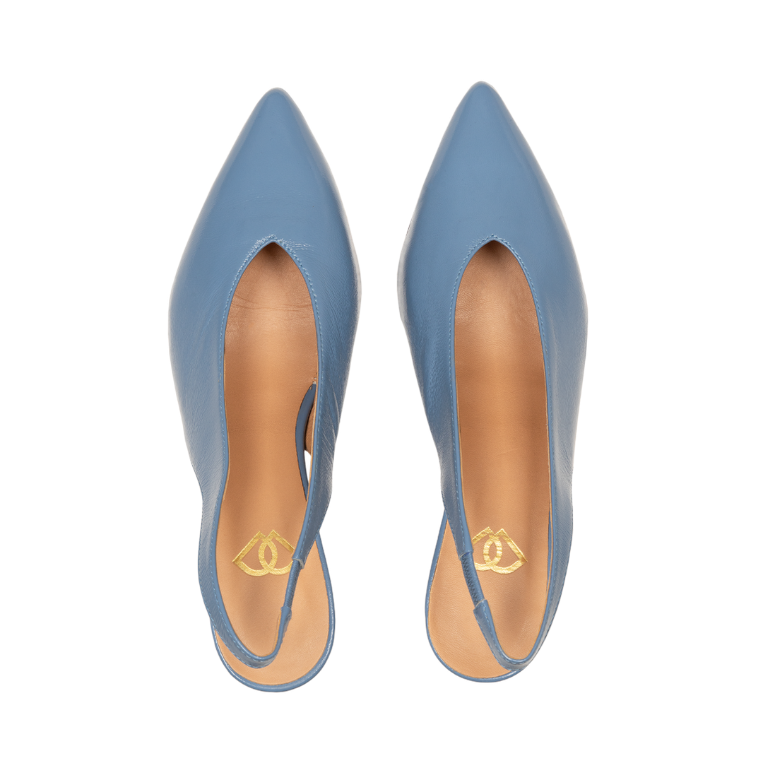 Кожаные слингбэки с глубоким V-образным вырезом - это яркая и характерная модель, которая сочетает в себе цвет и элегантную форму. Эти туфли созданы для того, чтобы стать центральным акцентом вашего образа.
