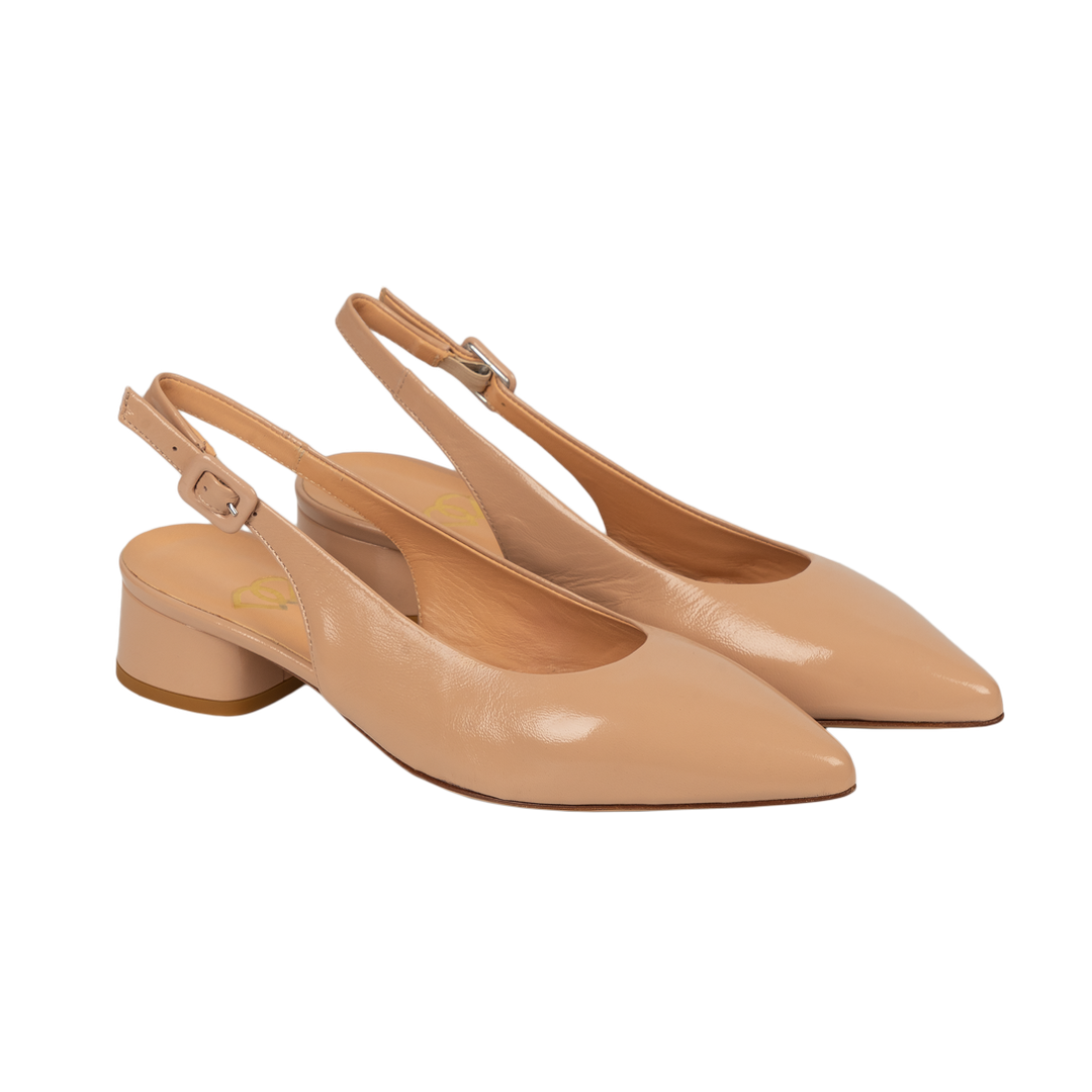 Универсальный бежевый, который визуально удлиняет ноги и сочетается с любой цветовой гаммой в одежде. Лаконичный крой с глубоким вырезом и изящным заостренным мысом.