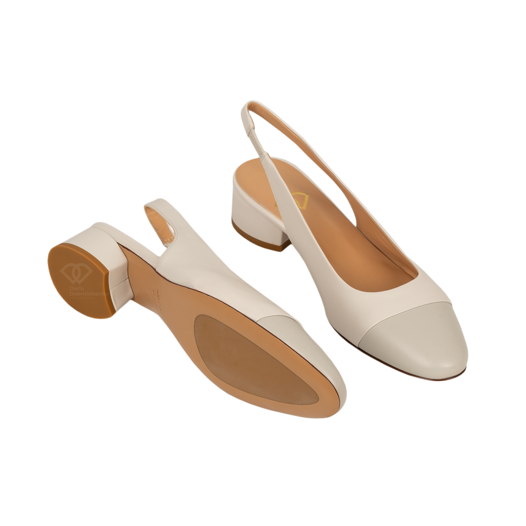 Белые кожаные слингбэки с акцентным мысом - элегантная классика в современном прочтении. Идеальный баланс между строгим офисным дресс-кодом и расслабленным городским шиком. Сочетание молочно-белого верха и деликатного контрастного мыса придает образу структурность и завершенность.Высококачественная натуральная кожа с мягким матовым финишем. Закрытый скругленный мыс и изящный ремешок на пятке для надежной фиксации. Устойчивый низкий каблук позволяет чувствовать себя уверенно в течении всего дня.