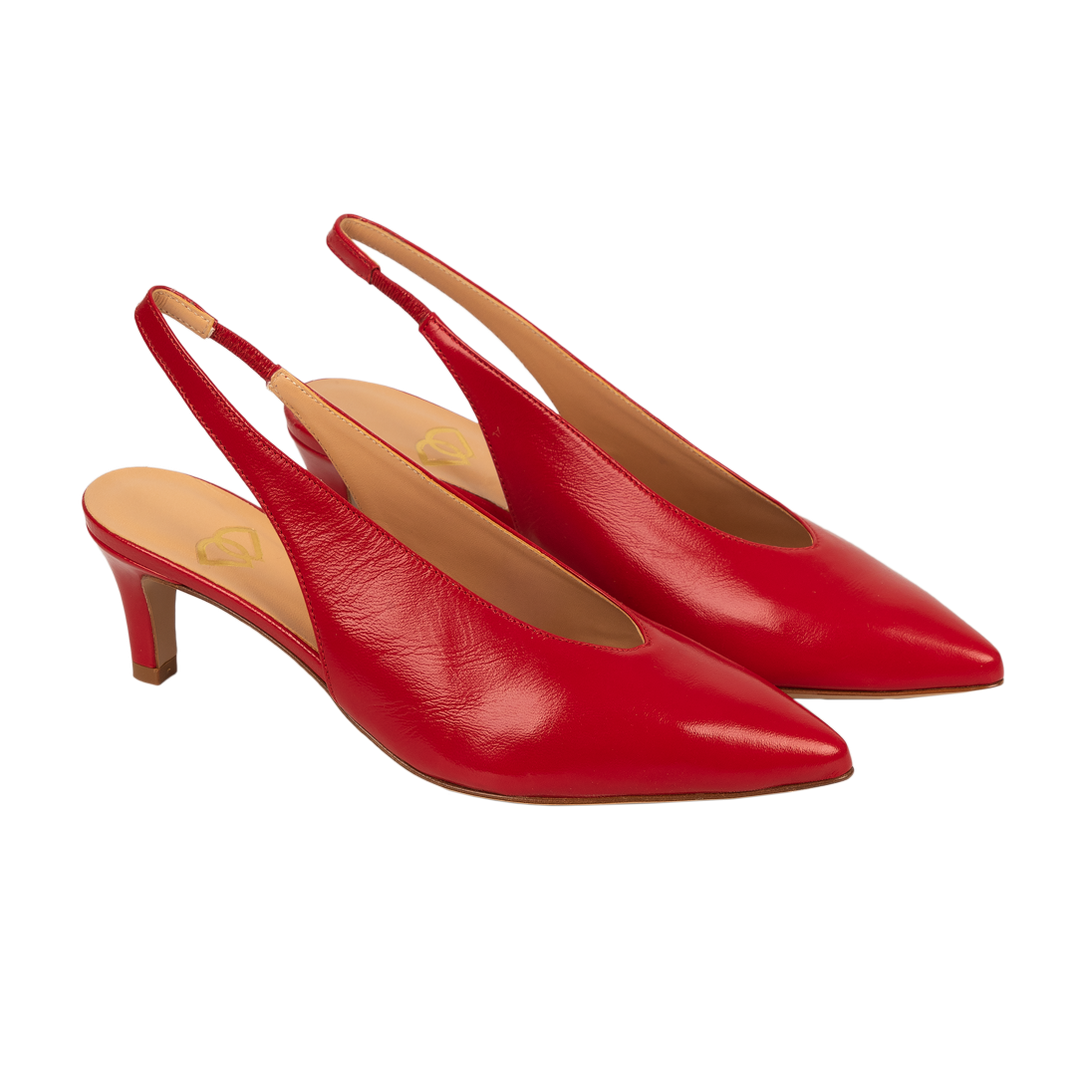 Кожаные слингбэки с глубоким V-образным вырезом - это яркая и характерная модель, которая сочетает в себе цвет и элегантную форму. Эти туфли созданы для того, чтобы стать центральным акцентом вашего образа.