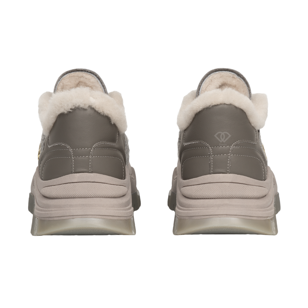 Повседневный стиль и уют объединены в одной модели. Роскошный меховая подкладка и стелька гарантируют тепло даже в самые морозные дни. Элегантный серый цвет прекрасно сочетаются с мягкой замшей, кожей и шерстью с узором елочка. Массивная, но легкая подошва обеспечивает хорошую амортизацию и защиту от холодной земли. Аккуратная шнуровка с серебряными вставками в тон и небольшой золотистый элемент сбоку подчеркивает внимание бренда к деталям.