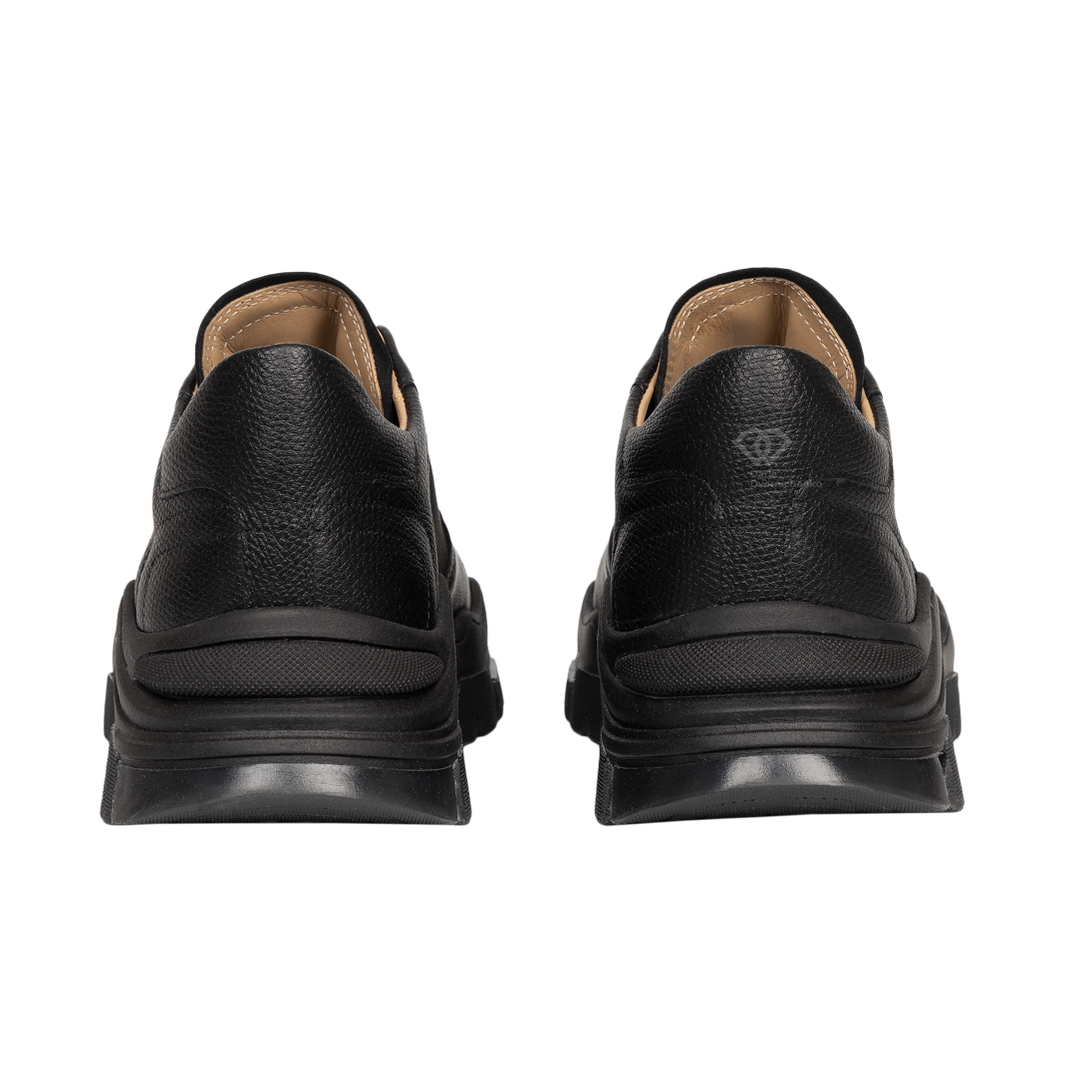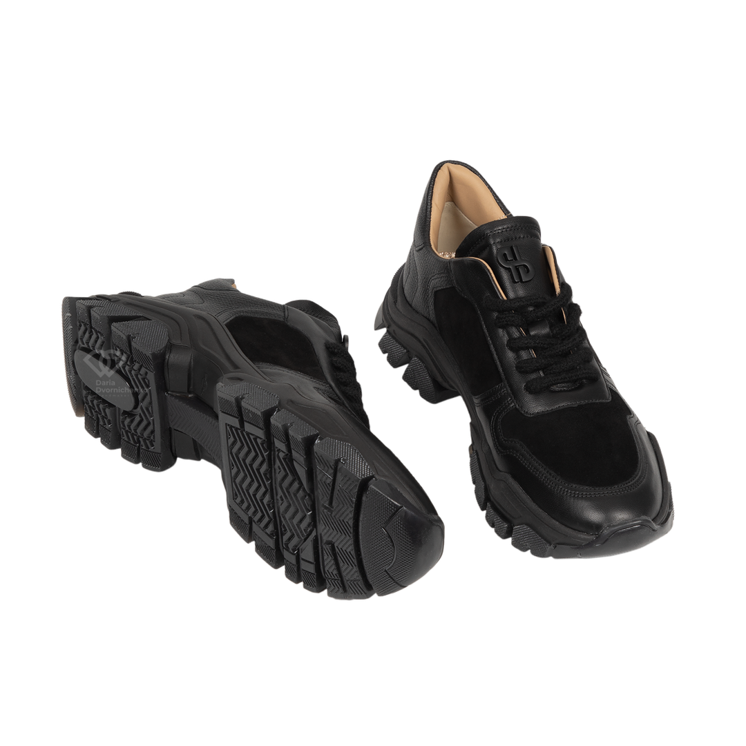 Стильные кроссовки, сочетающие классическую элегантность и современный спортивный дизайн, абсолютно базовая модель которая выдержит все испытания временем и трендами. Верх выполнен из комбинации гладкой кожи и мягкой замши глубокого черного цвета. Это обеспечивает не только великолепный внешний вид, но и долговечность. Внутренняя отделка из бежевой кожи, на язычке фирменный моногамный логотип.Черная цветовая гамма делает эту модель универсальной и легкой для сочетания как с деловым стилем, так и с повседневными джинсами. Массивная подошва обеспечивает превосходную амортизацию и подчеркивает актуальный силуэт.