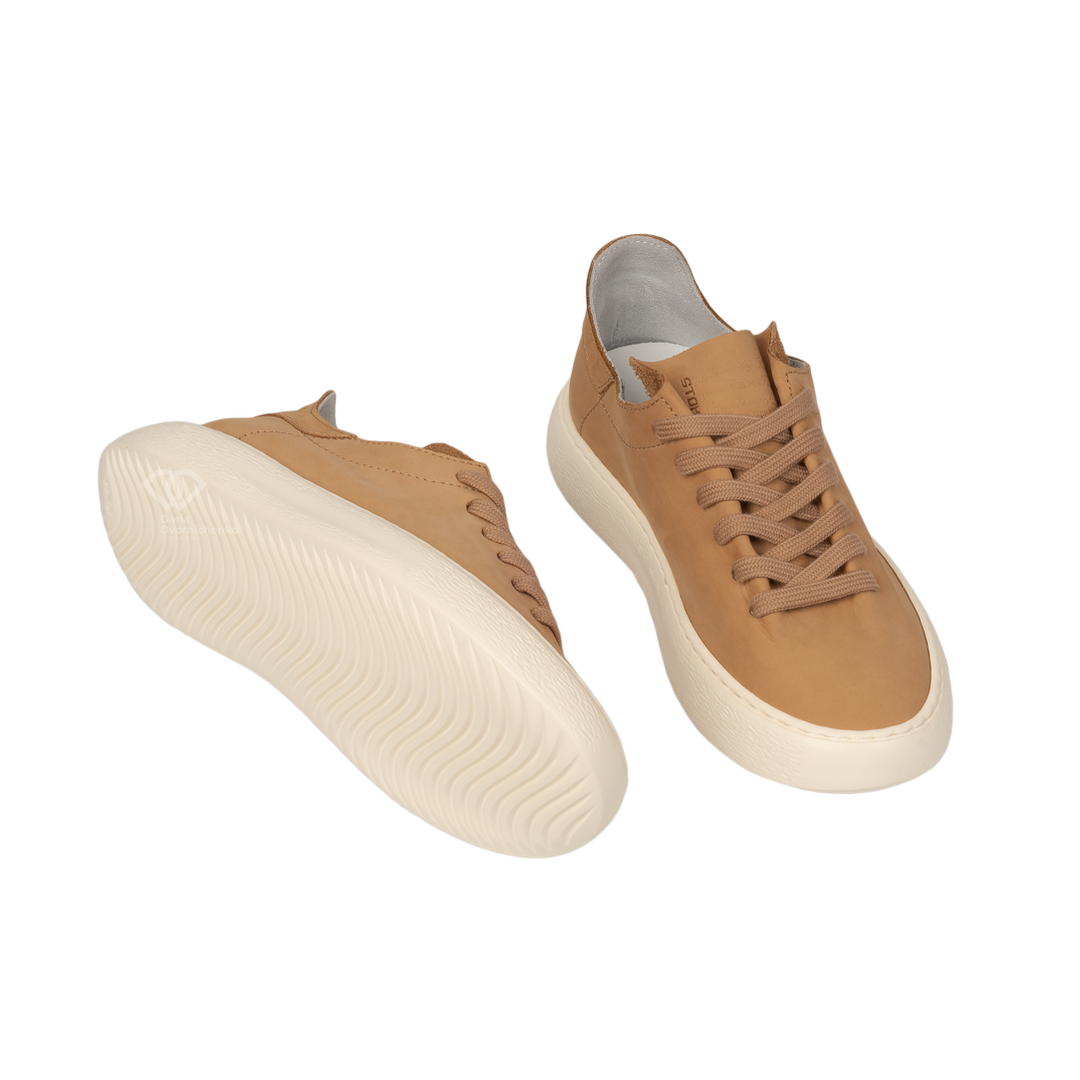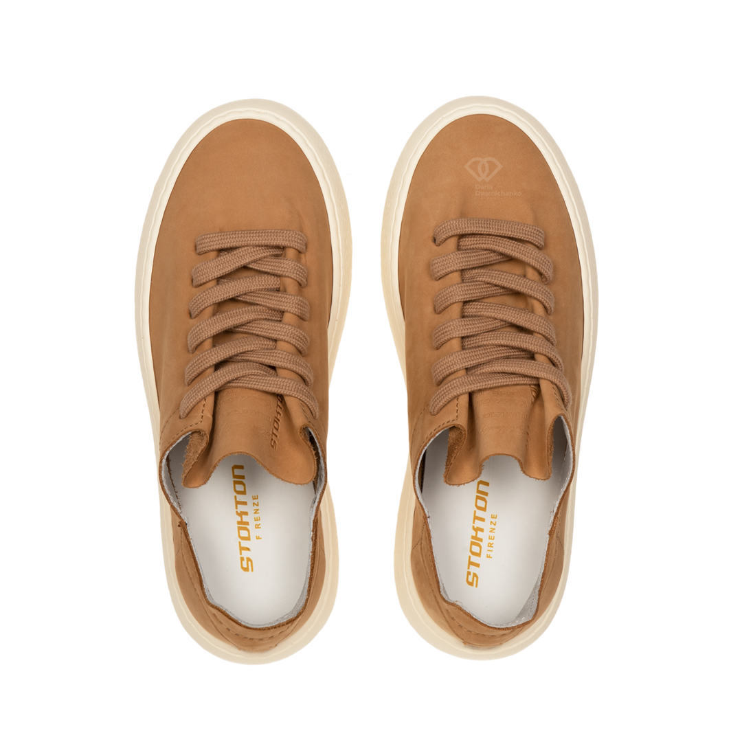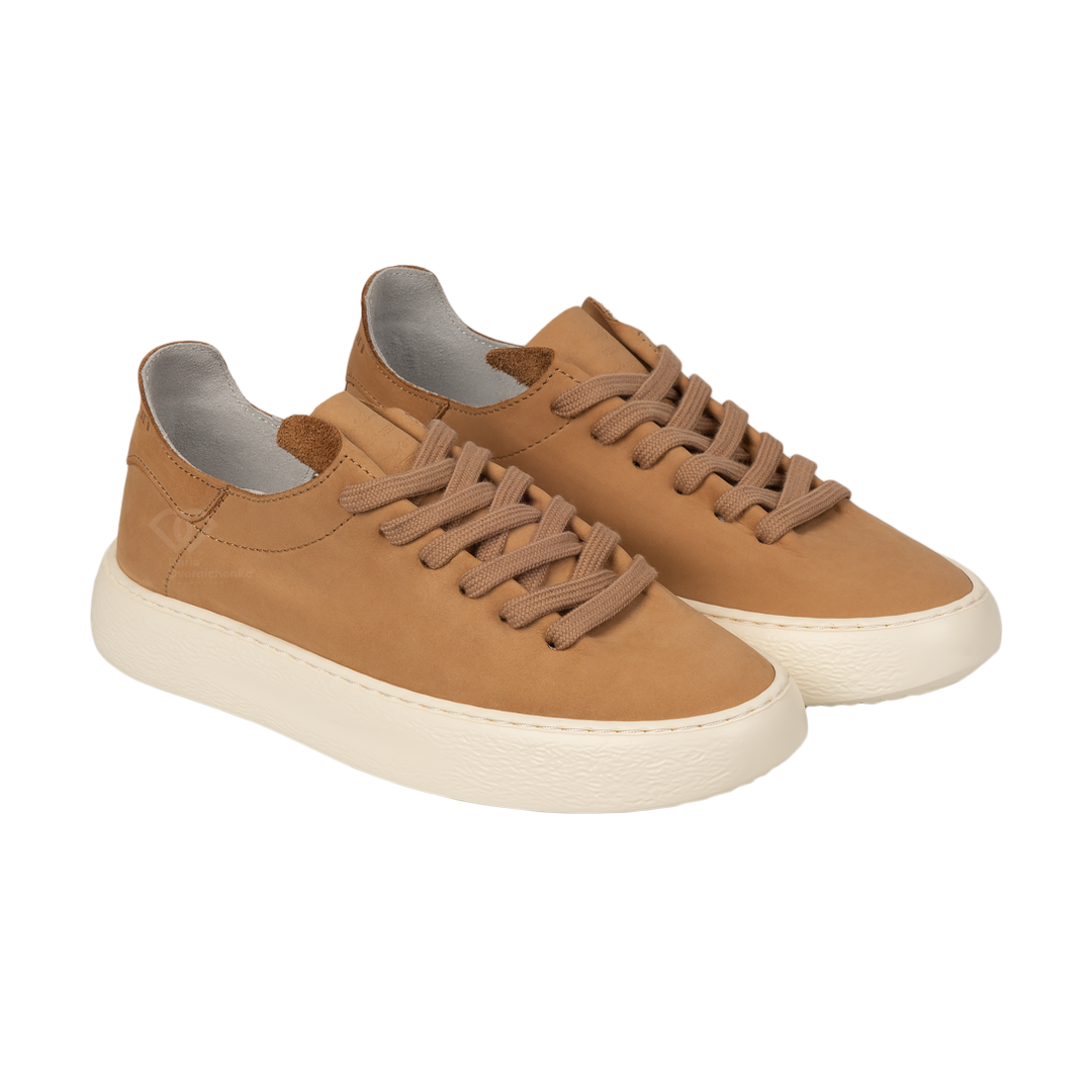Бархатистая, невероятно мягкая кожа с матовым финишем. Нубук отличается долговечностью и способностью красиво «стареть», приобретая благородный вид в процессе носки.Модель имеет обтекаемую форму и мягкий задник, который не натирает, обеспечивая комфорт с первой минуты.Белоснежная подошва из облегченной резины освежает образ и создает стильный контраст с теплым карамельным оттенком верха. Прошивка по всему периметру гарантирует надежность и долгий срок службы.Шнурки подобраны точно в тон материала, что поддерживает монохромный и выдержанный стиль пары.