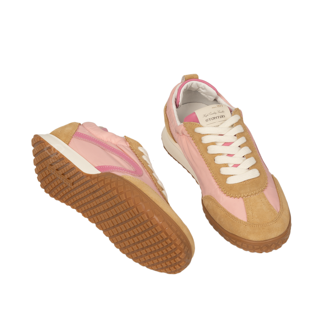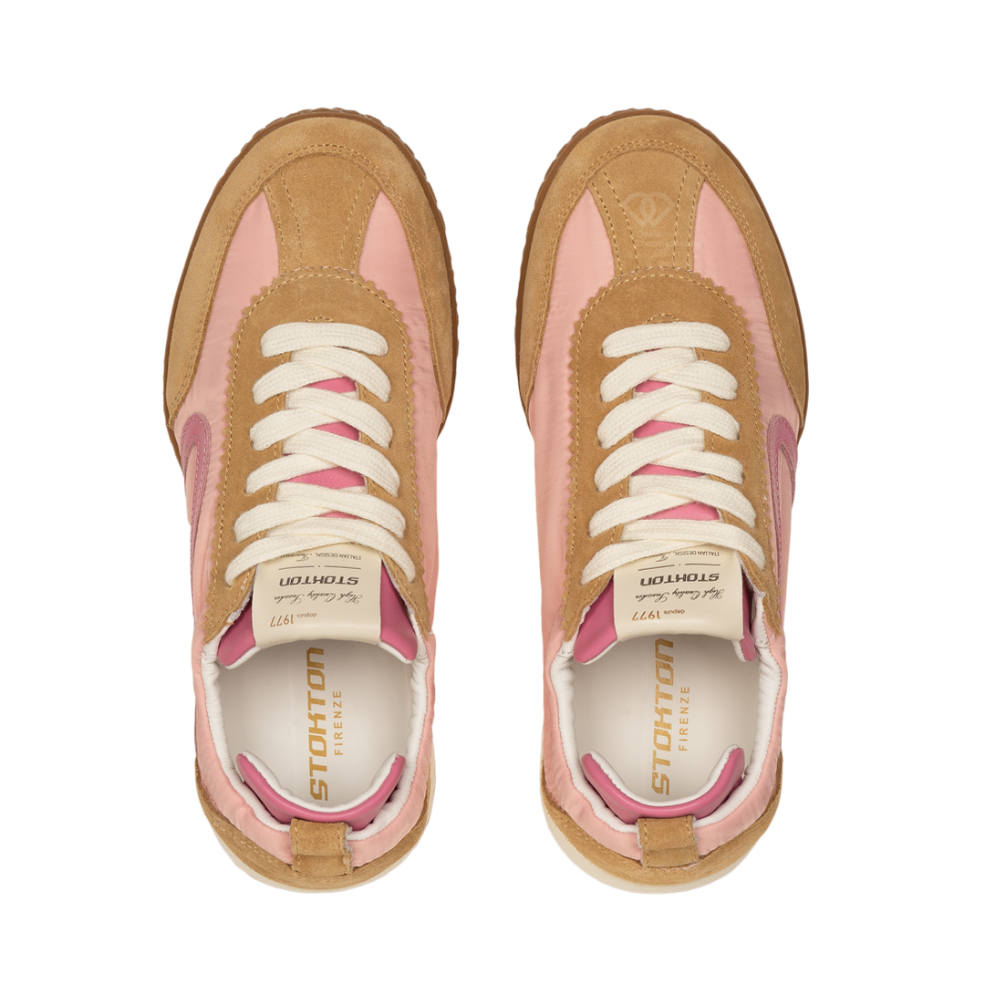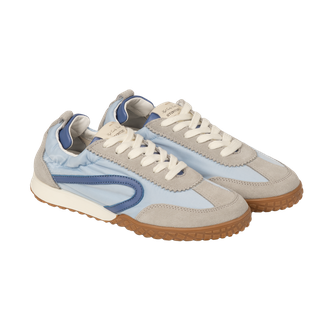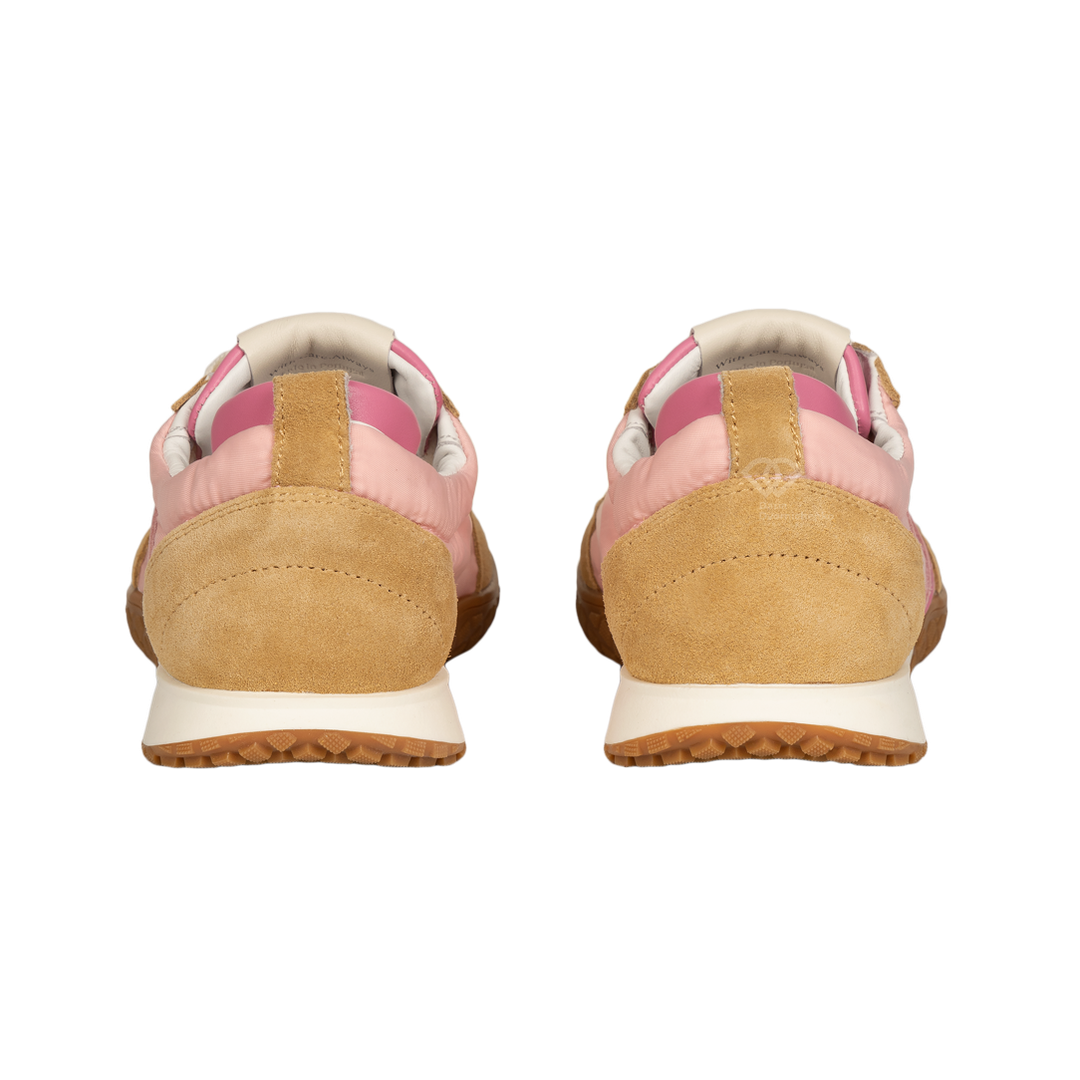 Верх выполнен из комбинации натуральной замши и прочного текстиля. Замшевые вставки добавляют глубины и фактуры, а мягкий текстиль обеспечивает лёгкость и комфорт при носке. Декоративные элементы и плавные линии подчёркивают динамичный силуэт модели.