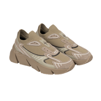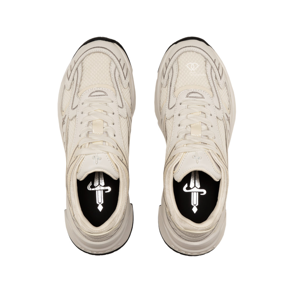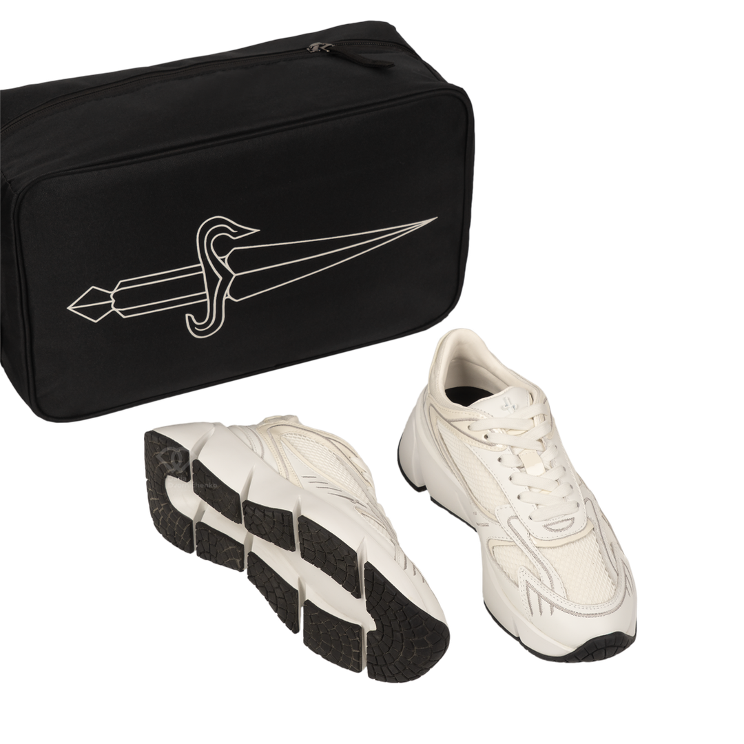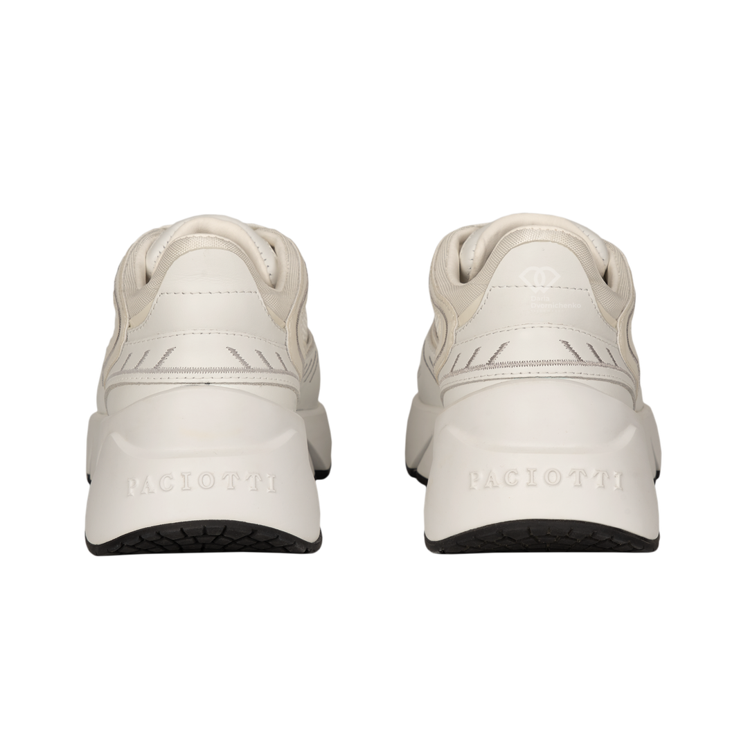 Футуристичный силуэт от Paciotti, объединяющий текстурную кожу Vitello и дышащую сетку. Массивная подошва с протектором обеспечивает амортизацию и создает сильный визуальный акцент. Модель дополнена минималистичным металлическим декором в виде кинжала на боковой панели. Роскошь, которая не нуждается в представлении.