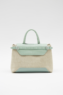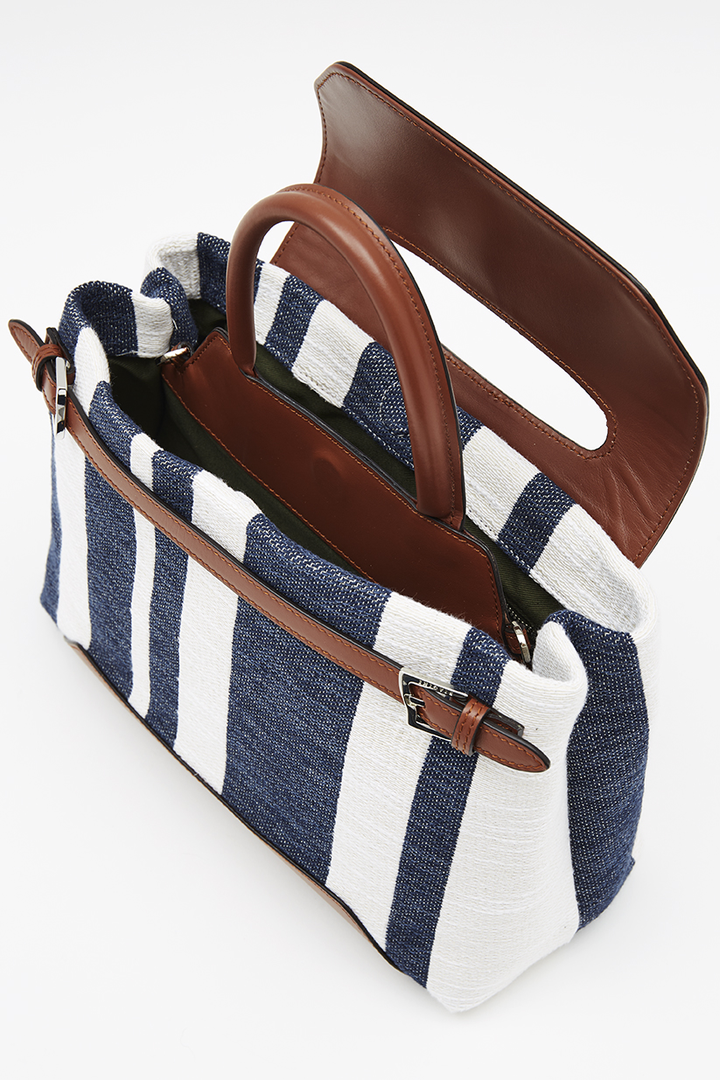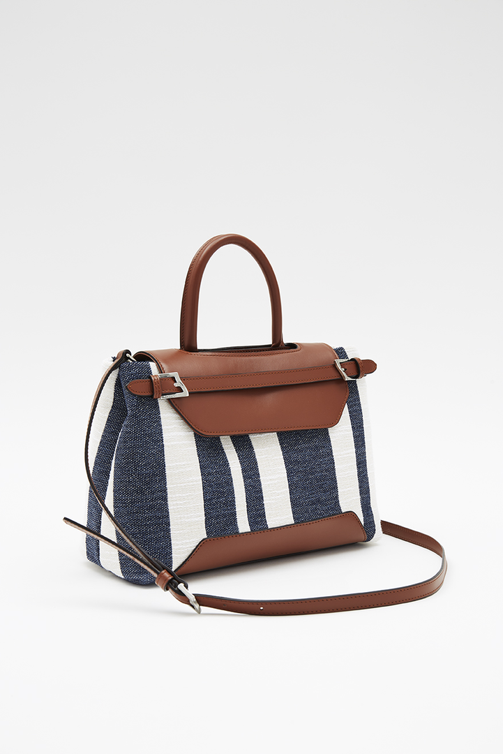 Сумочка выполнена из канвы и кожи. Внутри два раздельных отделения, тканевая подкладка, одна усиленная ручка и один длинный плечевой ремешок в пыльнике.