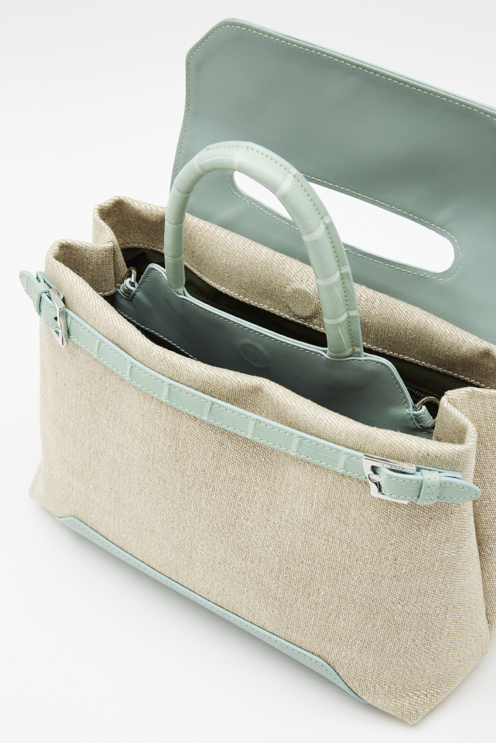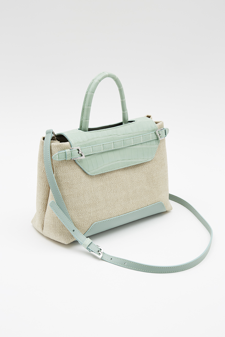 Сумочка выполнена из канвы и кожи крокодила. Внутри два раздельных отделения, тканевая подкладка, длинный плечевой ремешок в пыльнике. Одна усиленная ручка