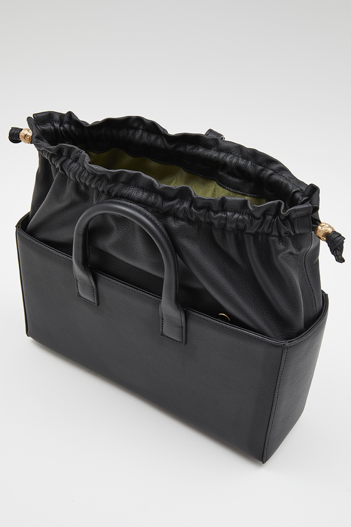 2 короткие ручки, 1 длинный ремень, одно отделение, два кармана, один из них на молнии.