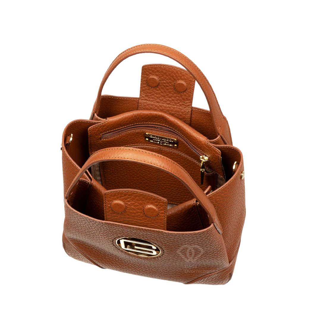 Трендовая форма «bucket bag» в новом прочтении. Модель отличается мягкими линиями, устойчивым дном и оригинальным дизайнерским элементом — крупным золотистым кольцом с литерой «G», которое служит не только украшением, но и смысловым центром образа. Качественная экокожа с выраженной зернистой фактурой устойчива к износу и долго сохраняет первоначальный вид. Высокая стационарная ручка позволяет комфортно носить сумку в руке или на предплечье.Продуманная конструкция с перемычкой на застежке обеспечивает быстрый доступ к вещам и их сохранность.