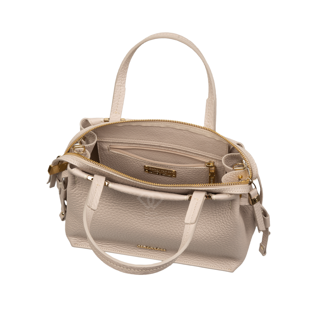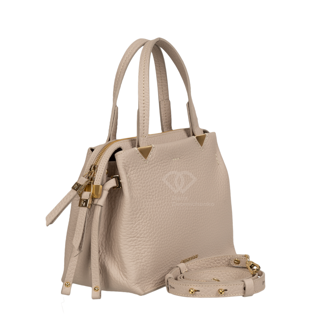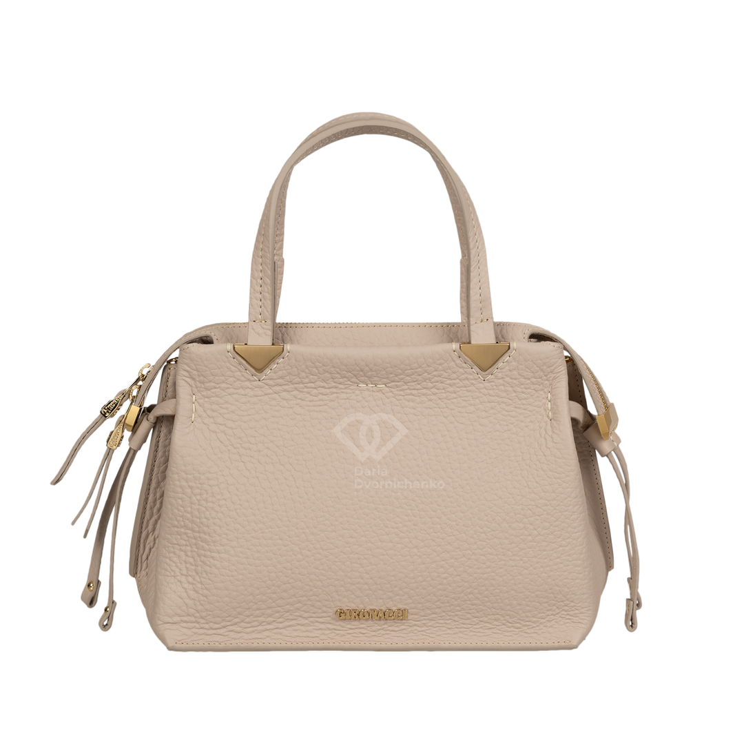 Идеальный аксессуар для тех, кто ценит комфорт без компромиссов с элегантностью. Благодаря мягкой форме и зернистой фактуре, сумка выглядит уютно и в то же время дорого. Сумка деликатно адаптируется под содержимое, сохраняя эстетичный вид. Зернистая экокожа устойчива к царапинам и приятна на ощупь. Декоративные узлы на боковых шнурках и минималистичные металлические вставки золотистого цвета.