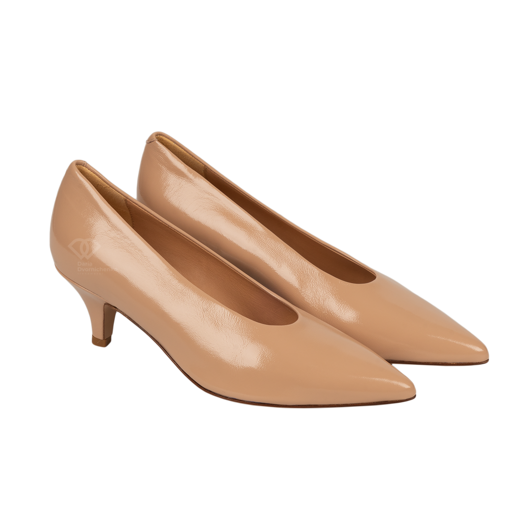 Кожаные туфли-лодочки с глубоким вырезом - это лаконичная и статусная пара, которая станет основой вашего базового гардероба. Эти туфли сочетают в себе классический силуэт лодочек и повышенный комфорт.Натуральная гладкая кожа премиум-качества в универсальном бежевом оттенке, максимально приближенном к цвету кожи. Глубокий округлый вырез и мягкие бортики обеспечивают комфортную посадку, не сдавливая стопу.