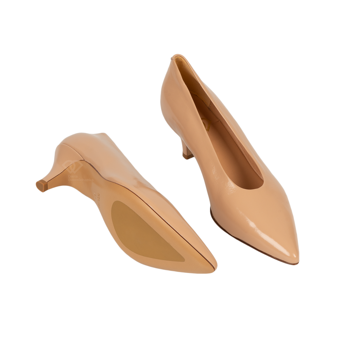 Кожаные туфли-лодочки с глубоким вырезом - это лаконичная и статусная пара, которая станет основой вашего базового гардероба. Эти туфли сочетают в себе классический силуэт лодочек и повышенный комфорт.Натуральная гладкая кожа премиум-качества в универсальном бежевом оттенке, максимально приближенном к цвету кожи. Глубокий округлый вырез и мягкие бортики обеспечивают комфортную посадку, не сдавливая стопу.